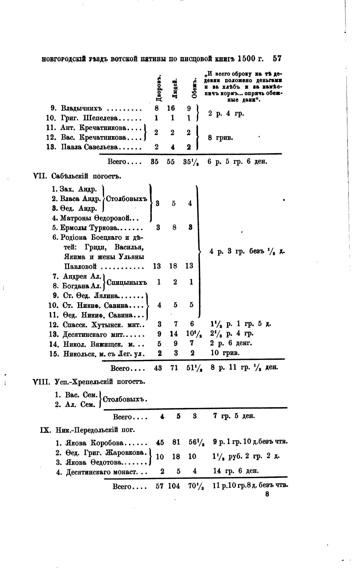 НОВГОРОДСЮЙ пЗдъ ВОТСКОЙ ПЯТИНЫ ПО ПИСЦОВОЙ ЕНИГВ 1500 Г. 57