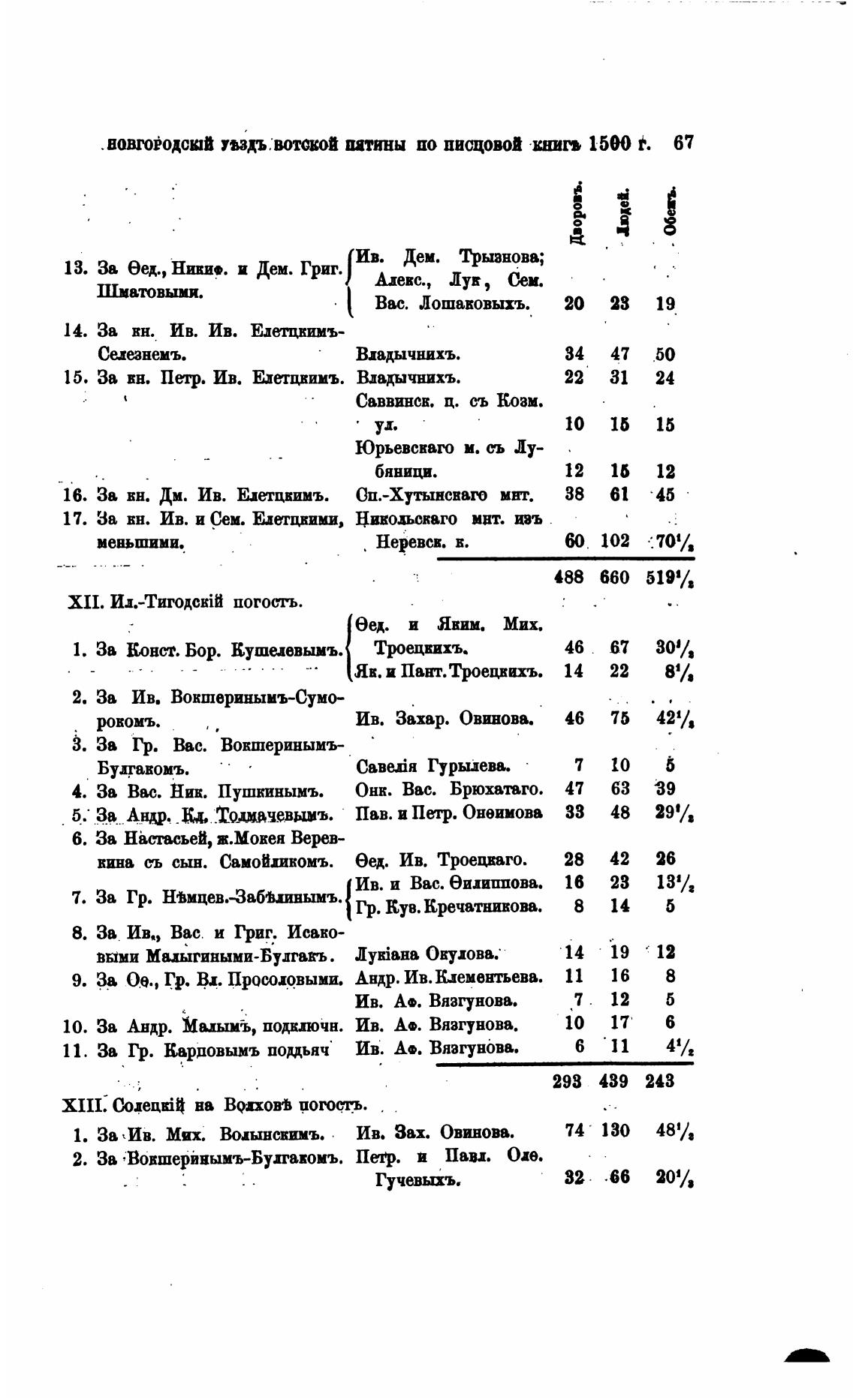 .вовгоЁодсюй увздъ патины по писцовой хниг• 1500 Ё. 67
