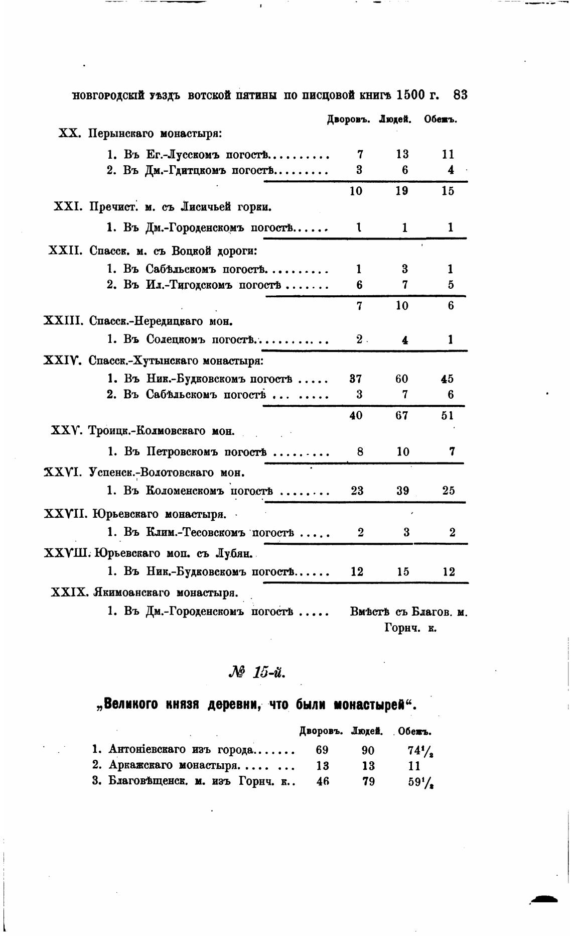 НОВГОРОДСКIЙ УВЗДЪ вотской ПЯТИНЫ ПО ПИСЦОВОЙ КНИÕ 1500 Г. 83