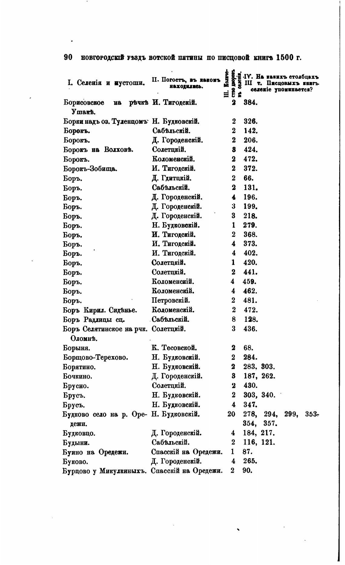 90 НОВГОРОДСЫЙ У•вздъ вотской пятивы по писцовой КНИГВ 1500 Г.