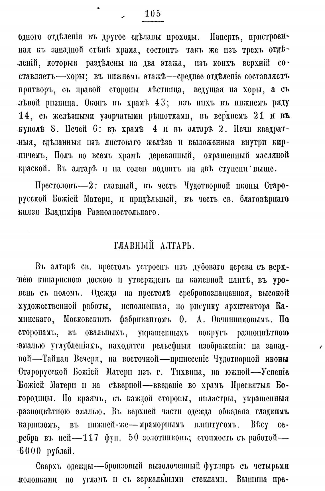 Престоловъ—2: главный, въ честь Чудотворной IlkOlIbI Старо-