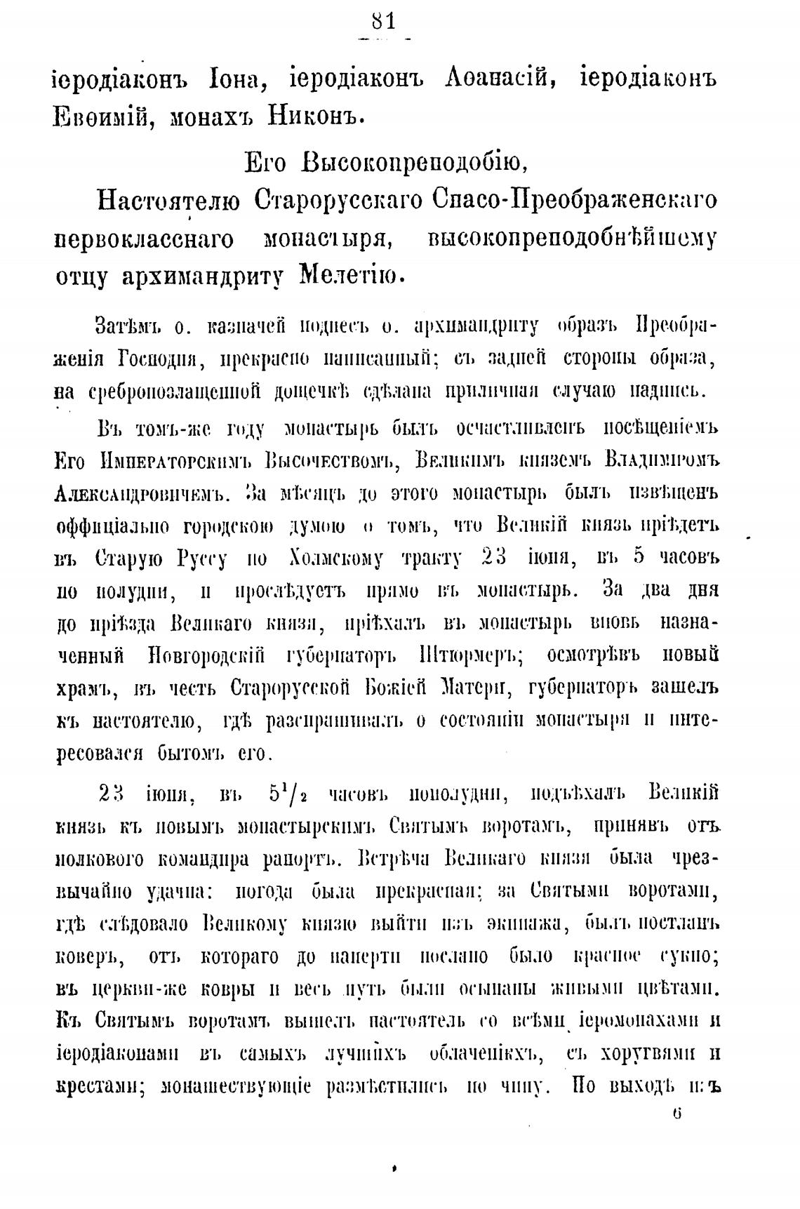 Настоятелю Старорусскаго Спасо-Преображенскаго