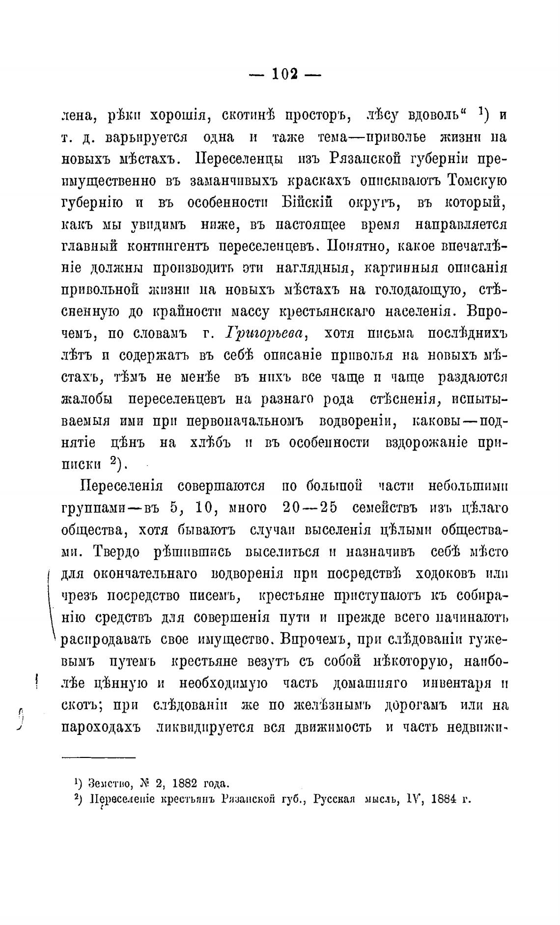 2) Переселе1йе крестьянъ Рязанской губ. , Русская мысль, 1 У, 1884 г.
