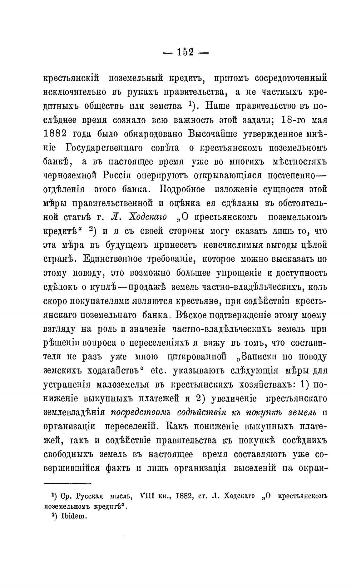 1) Ср. Русская мысль, VIII кн., 1882, ст. Л. Ходскаго „О крестьянскомъ
