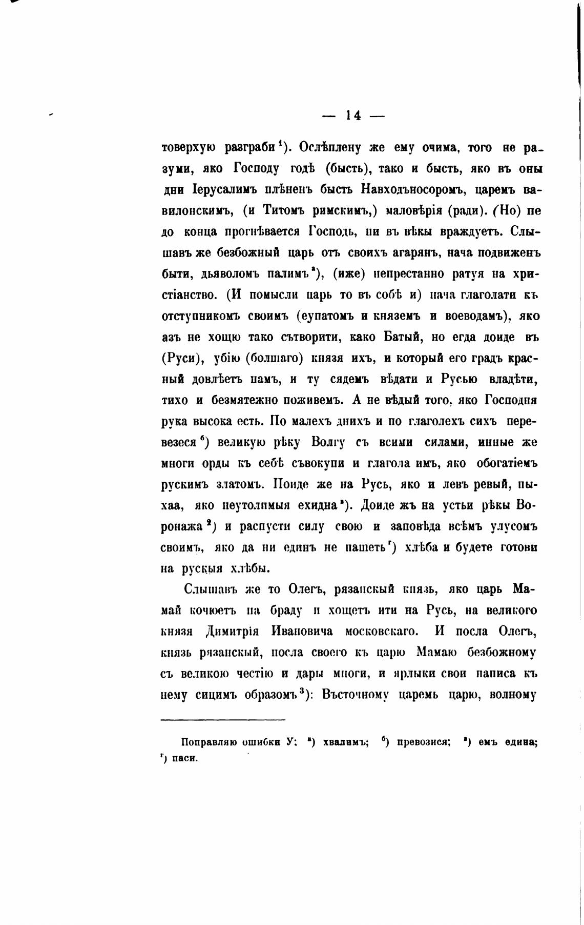 князь рязанскый, посла своего кь царю Мамаю безбожному