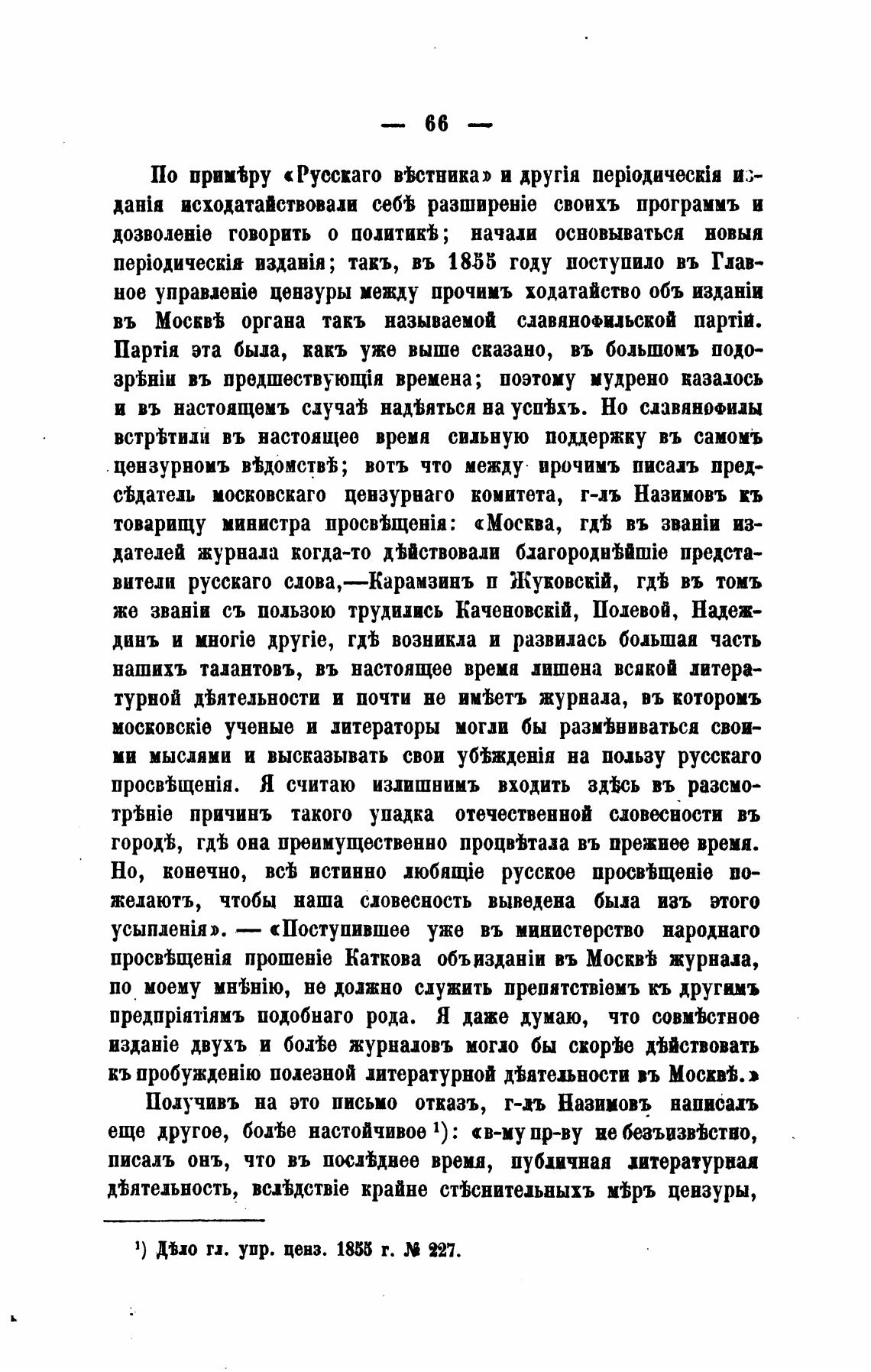 1) ДЫ гл. упр. ценз. 1855 r. 227.