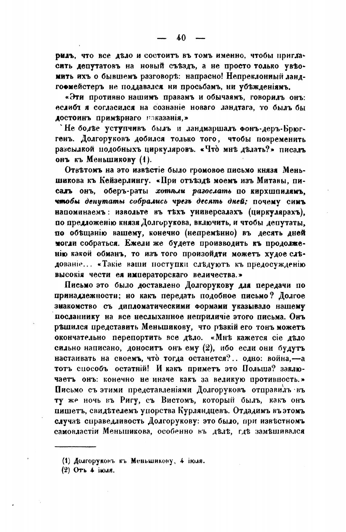 Письмо съ этими Долгоруковъ отправилъ • въ