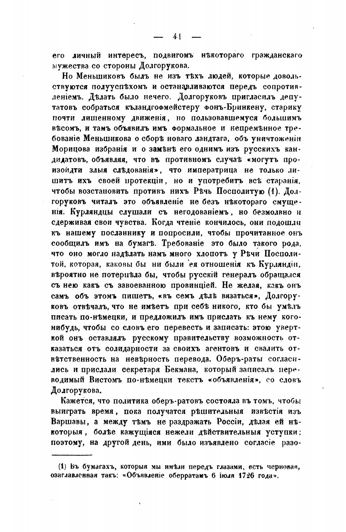 озаглавленная такъ: «06'b"BRHie оберратамъ 6 iro.m 1726 года».