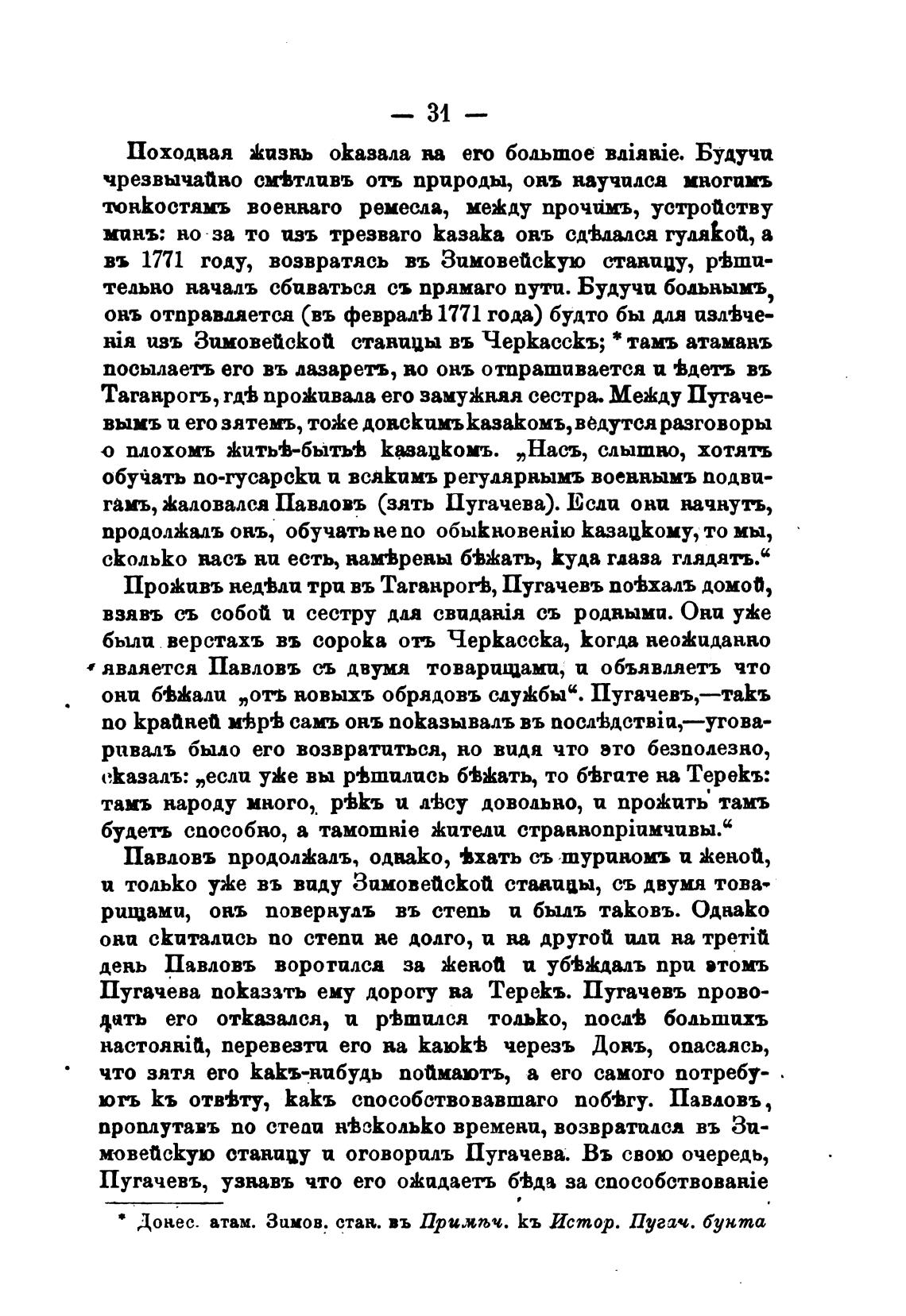 • Донес. атам. Зимов. стан. въ Примљч. Кь Истор. Пугач. бунта