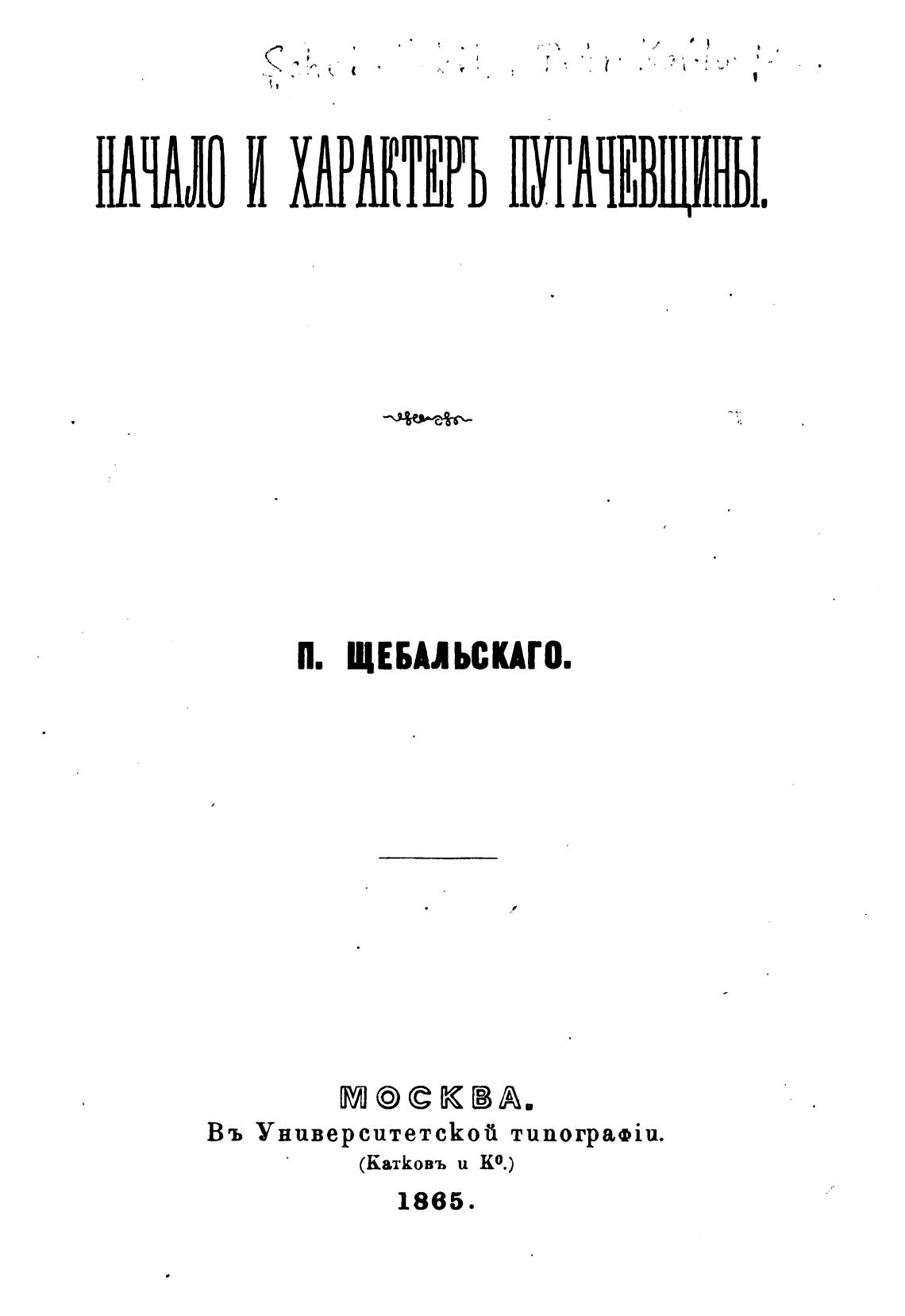Начало и характер пугачевщины. - Щебальский П. К.
