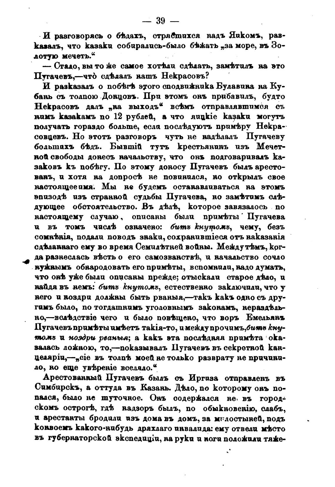заКовъ Кь поб±гу. По этому доносу Пугачевъ быль аресто-