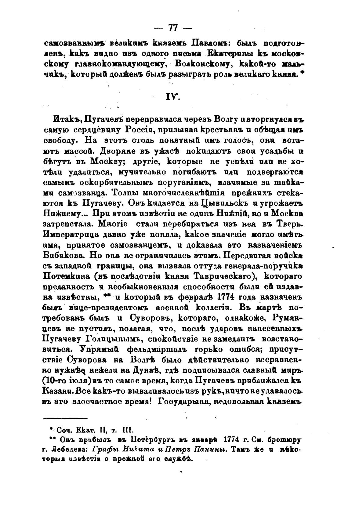 Овь прибыаъ въ Иетёрбургь въ январ• 1774 г. См. брошюру