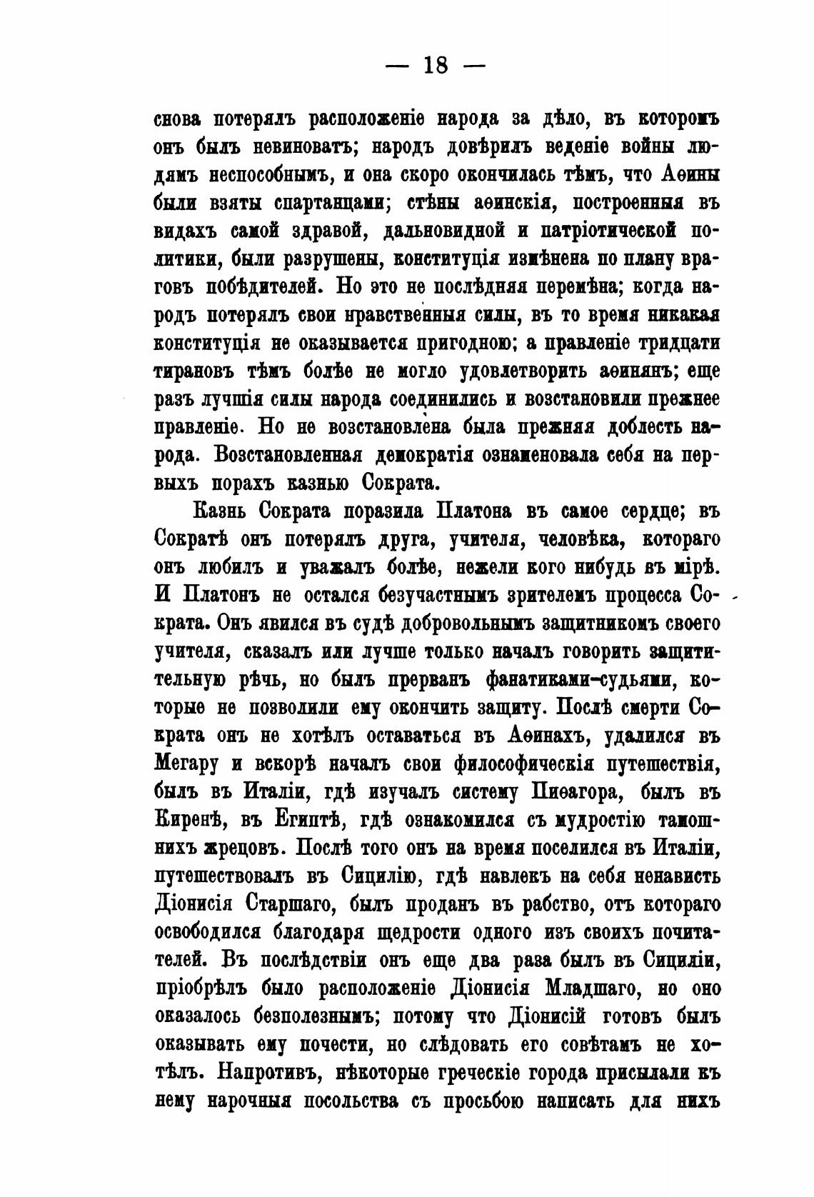 Казнь Сократа поразила Платона въ самое сердце; въ