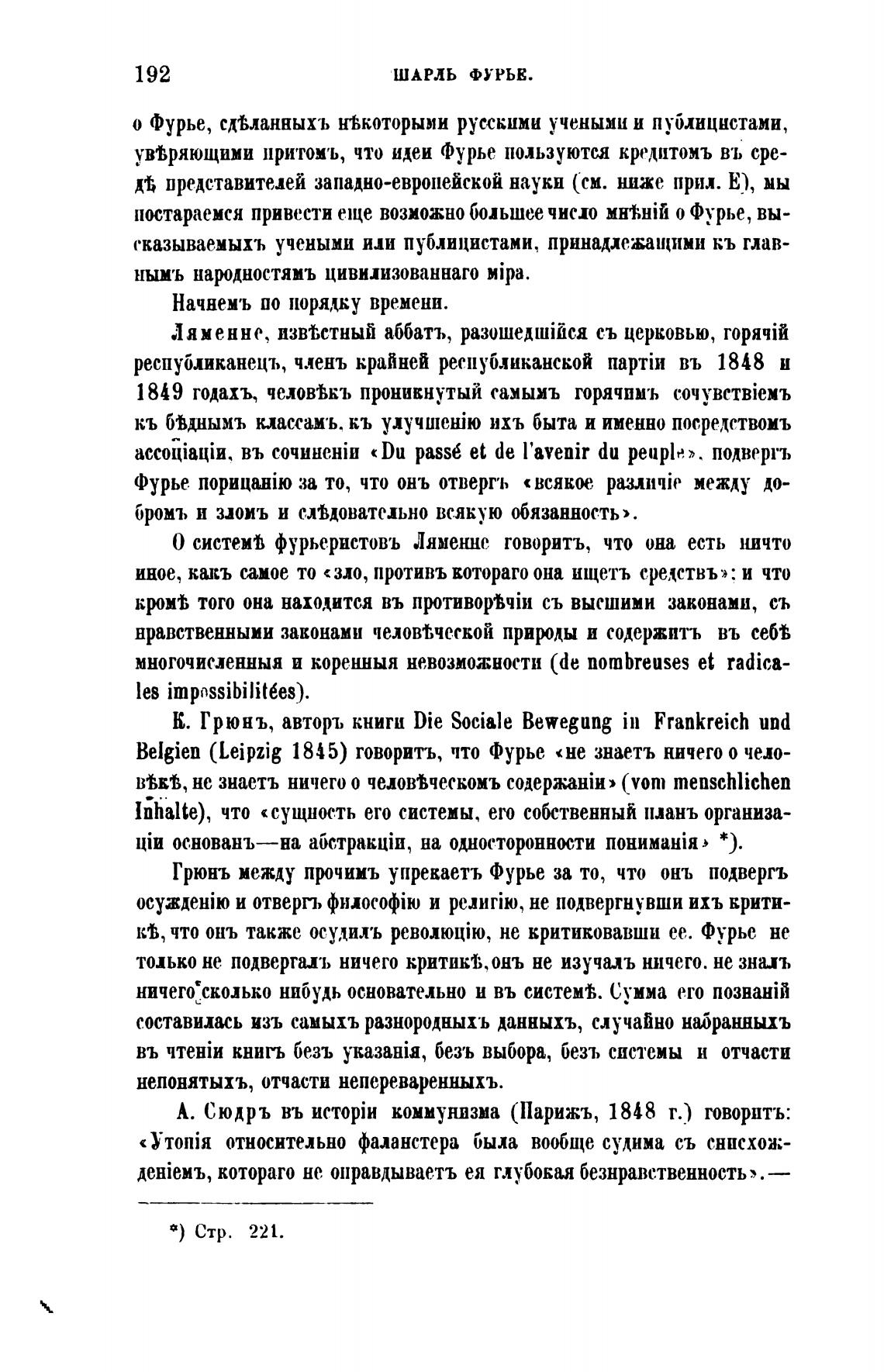 Грюнъ между прочимъ упрекаетъ Фурье за то, что онъ подвергъ
