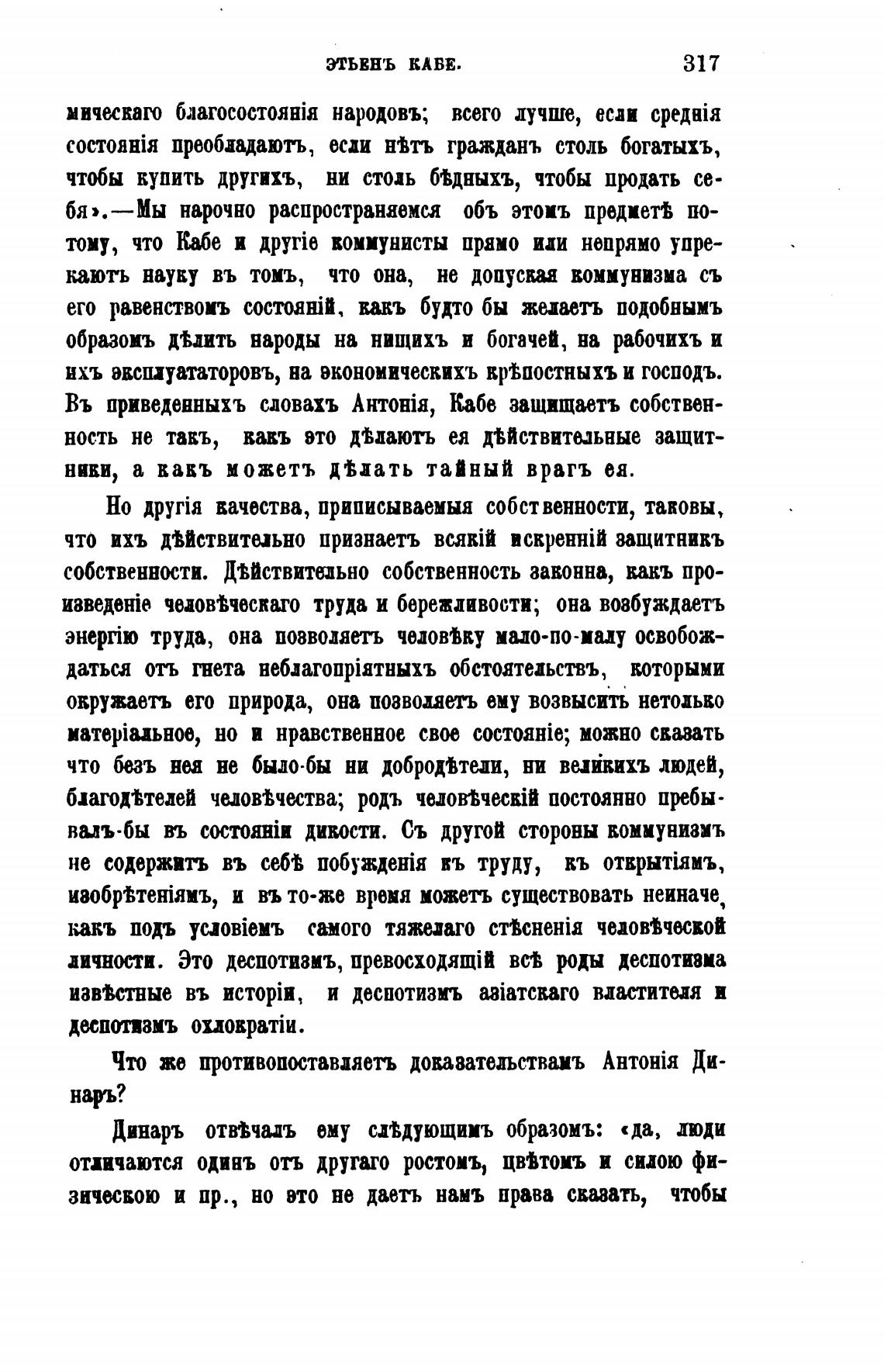 Въ приведенныхъ сдовахъ Антонја, Кабе защщаетъ собствен-