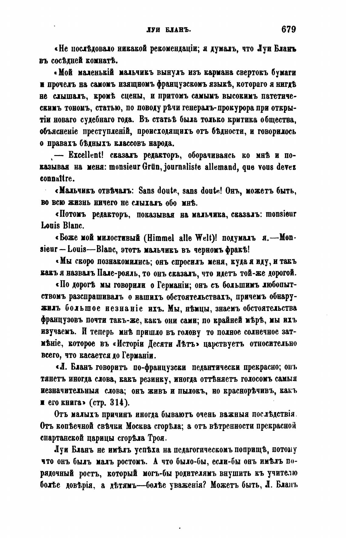 «Л. Бланъ говорить по-французски педантически прекрасно; онъ