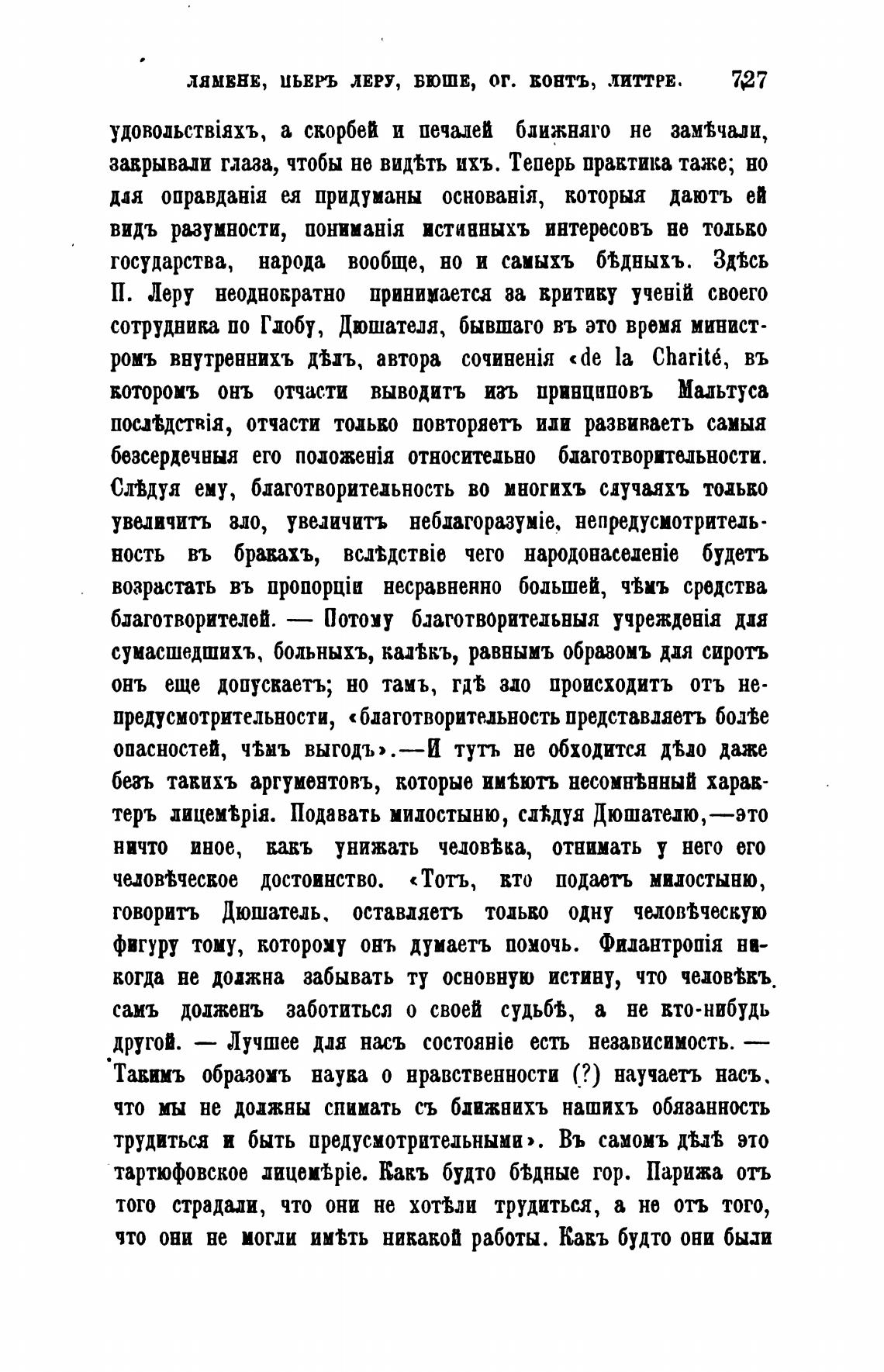 говорить Дюшатедь. оставляетъ тодьво одну человмескую