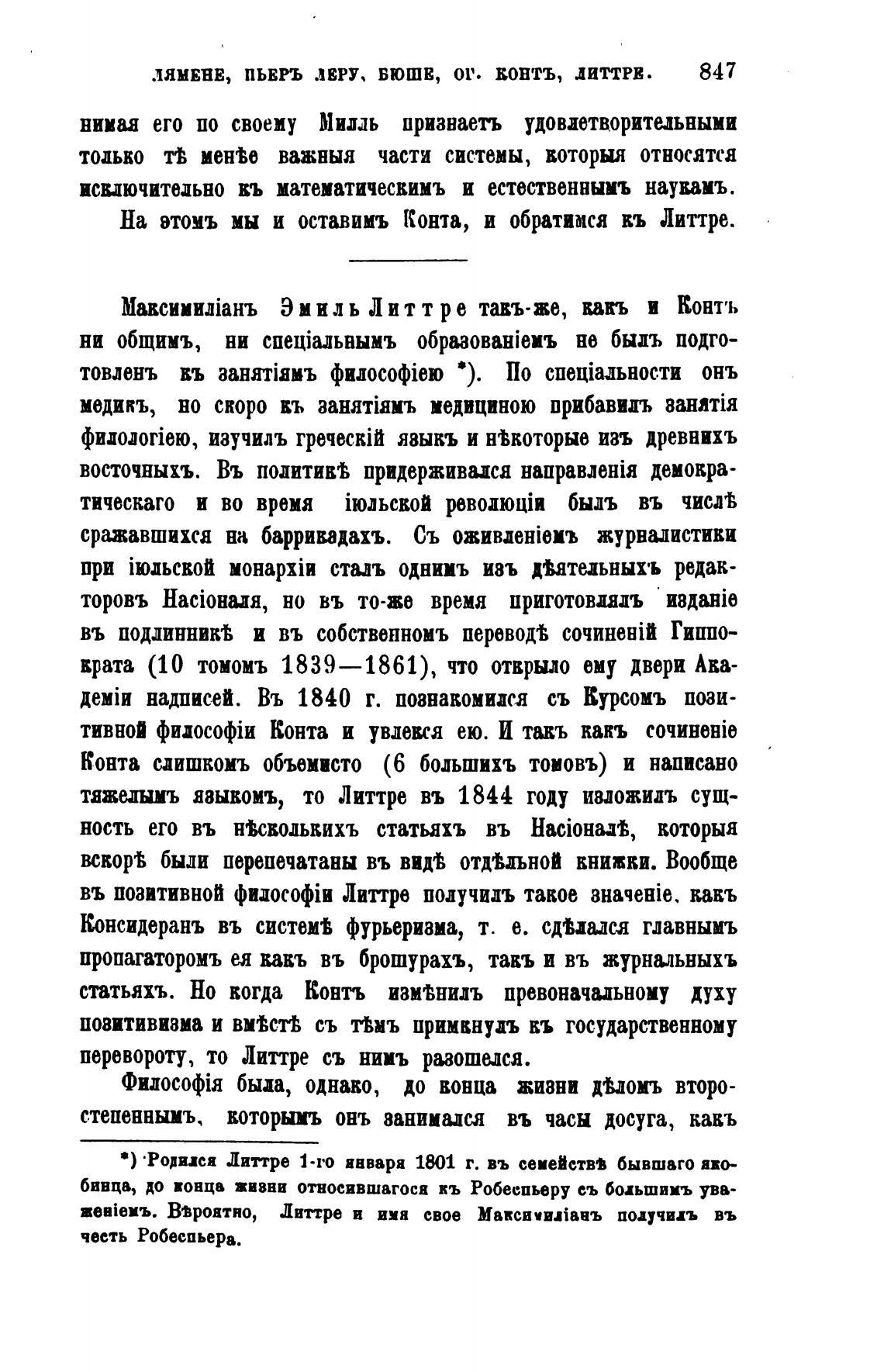 На этомъ мы и оставишь Конта, и обратимся въ Литтре.
