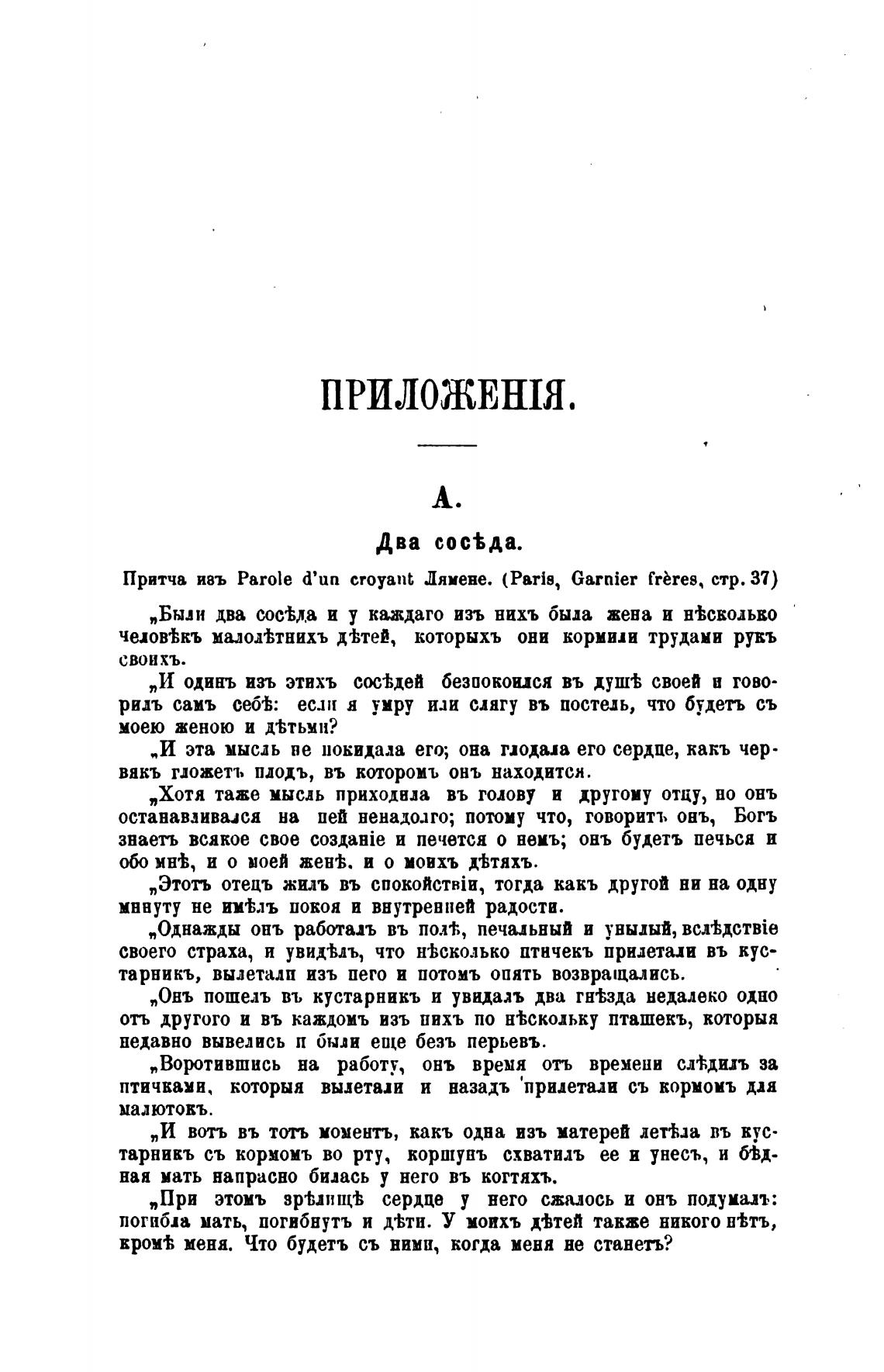 Притча ивъ Parole d'un croyanb Ляиене. (Paris, Garnier frbres, стр. 37)