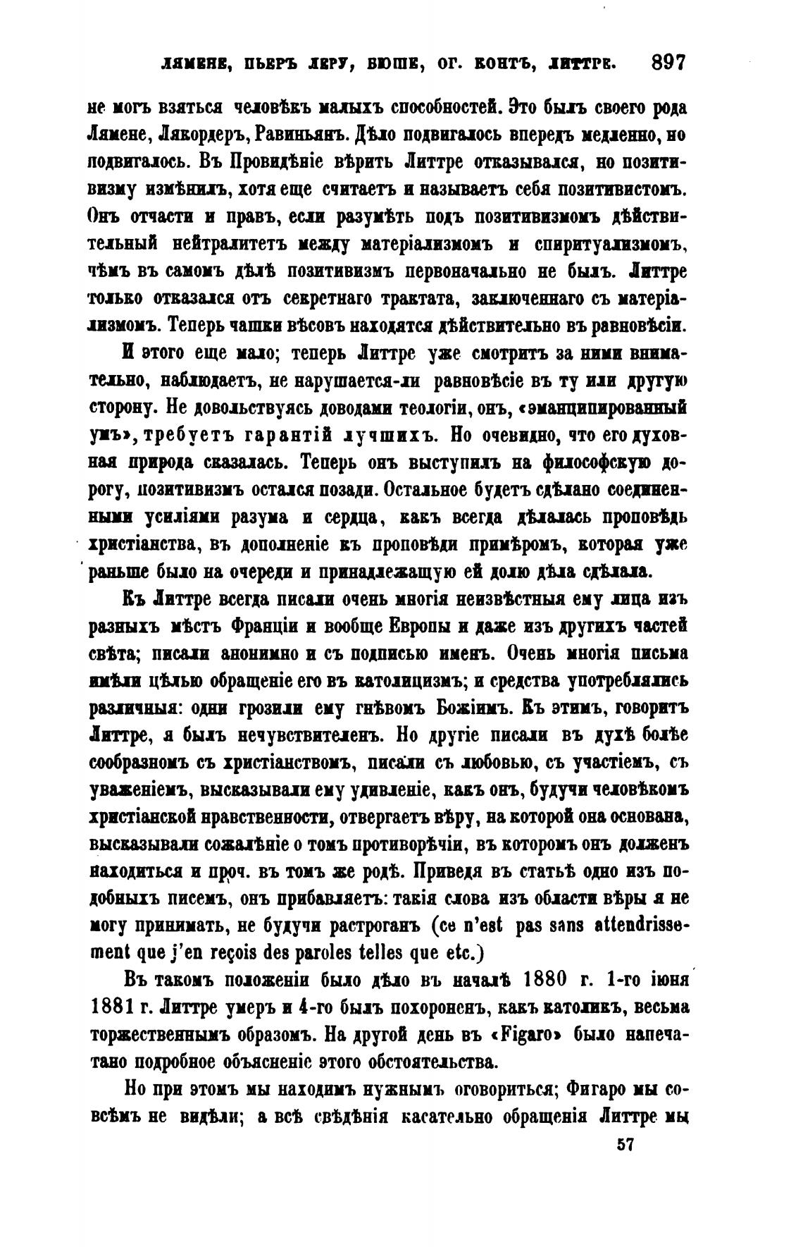 1881 г. Литтре умерь и 4-го быхь похороненъ, какъ ватопвъ, весьма