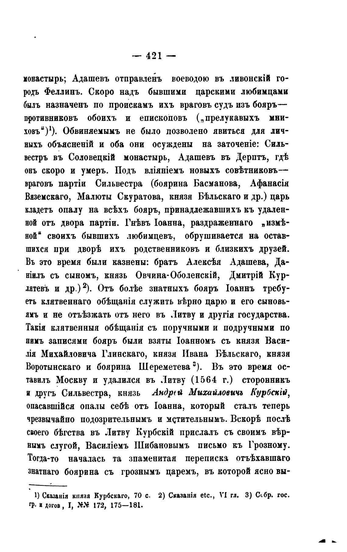 1) CkuaHia князя Курбскаго, 70 с. 2) Сказа:йя etc., гл. З) Себр. гос.