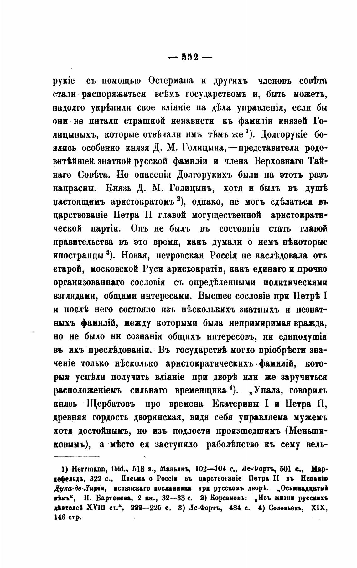 вятелей ХУШ ст.“, 222—225 с. З) Ле•Фортъ, 484 с. 4) Соловьевъ, ИХ,