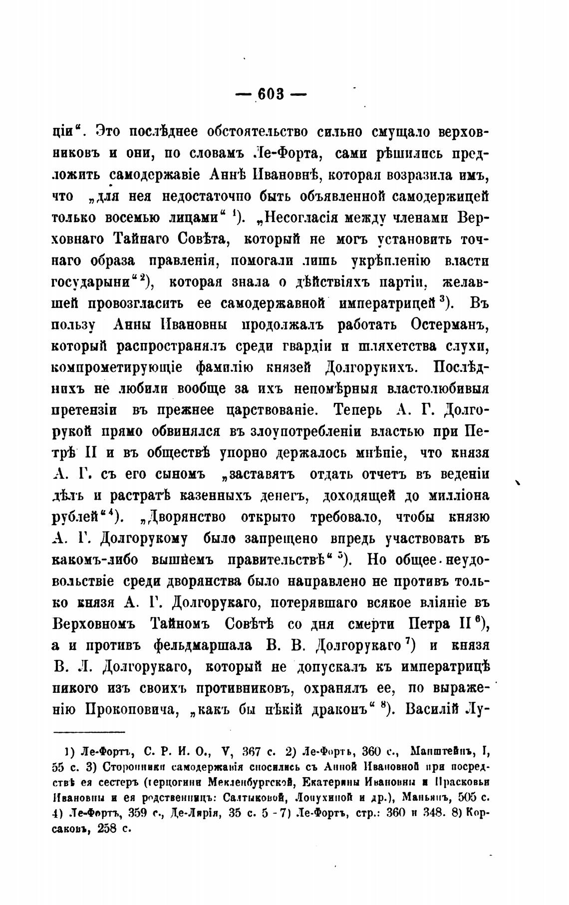 4) Лефорт, 359 с., 35 с. 5 -7) Лефортъ, стр.: 360 и 348. 8) Кор-