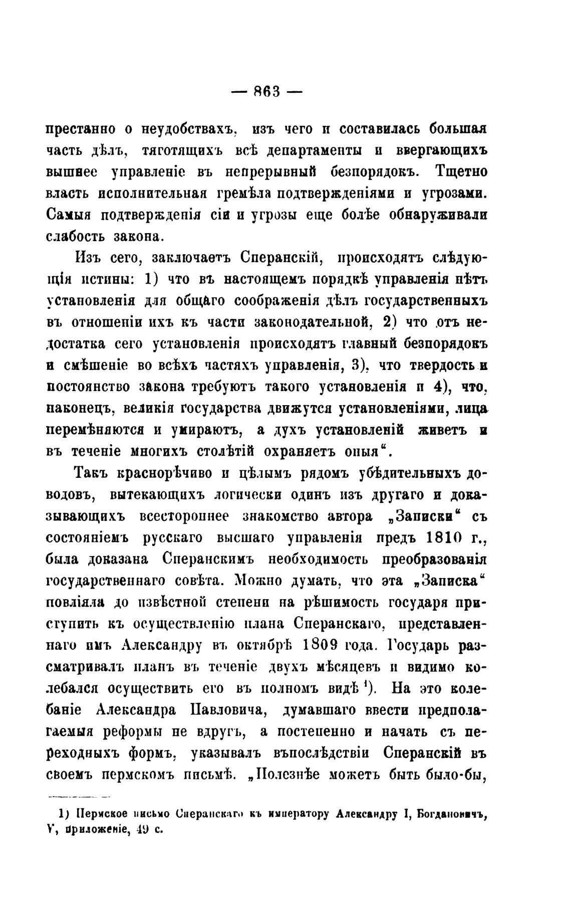 1) Периское письмо Сперанскаг.) кь императору Александру 1, Богданон•чъ,