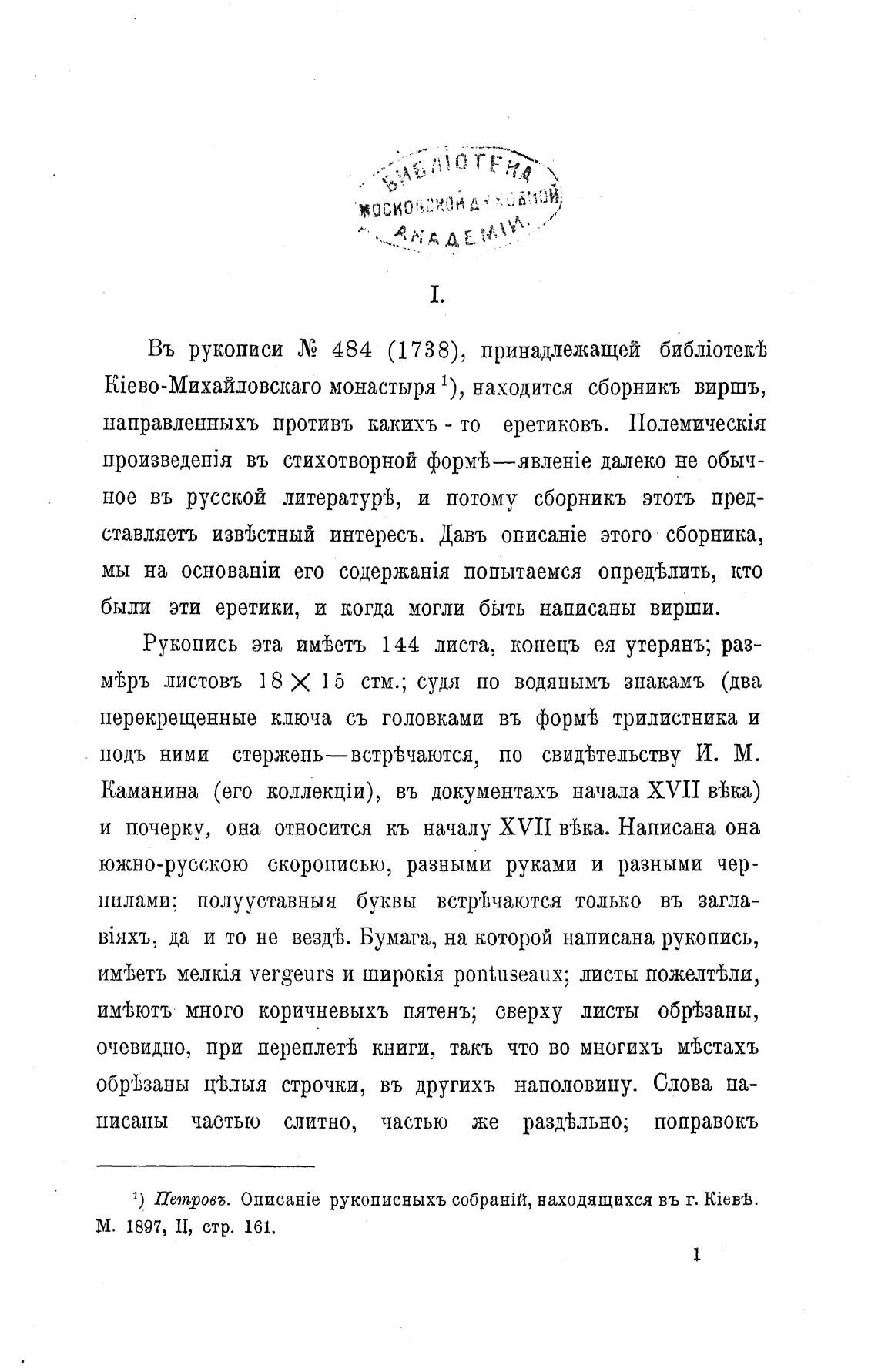 1) Петровб. рукописныхъ находящихся въ г. kieyB.