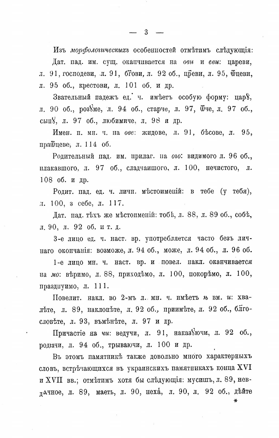 Имен. п. мн. ч. па оде: жидове, л. 91, 6'Ьсове, л. 95,