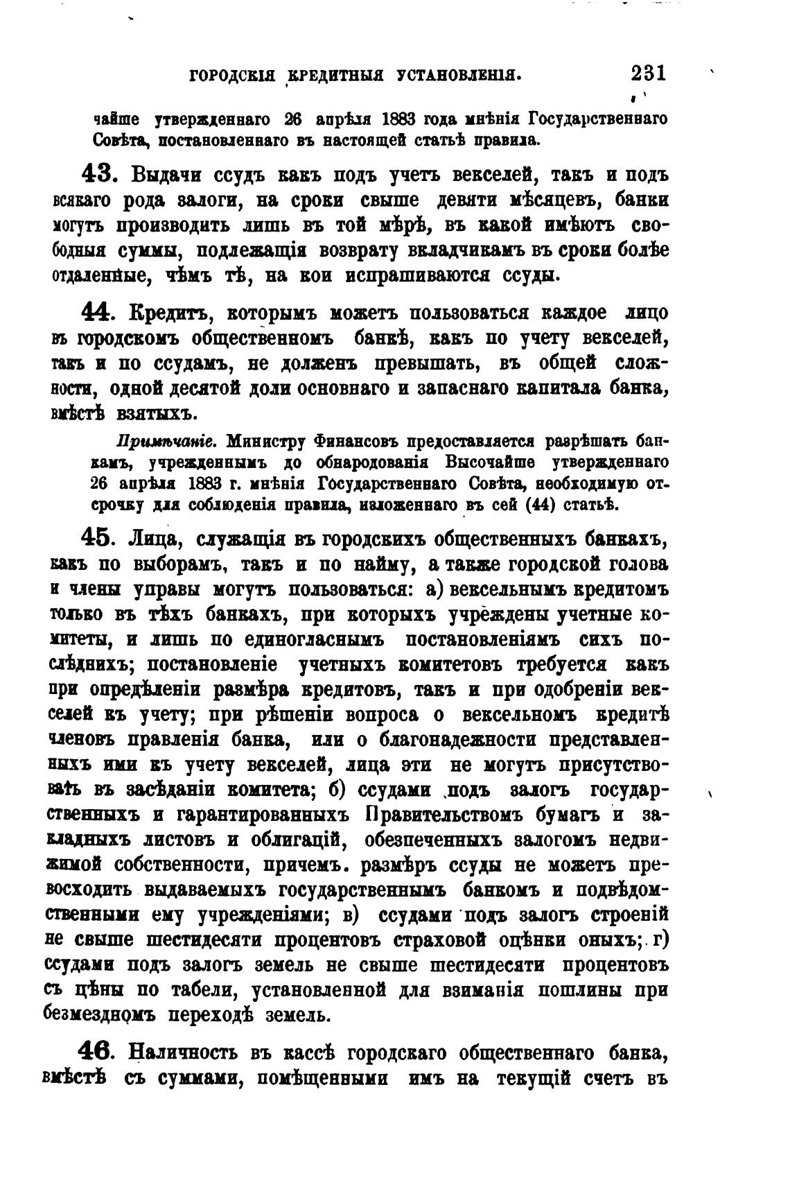 43. Выдачи ссудъ вавъ подъ учеть векселей, тавъ и подъ