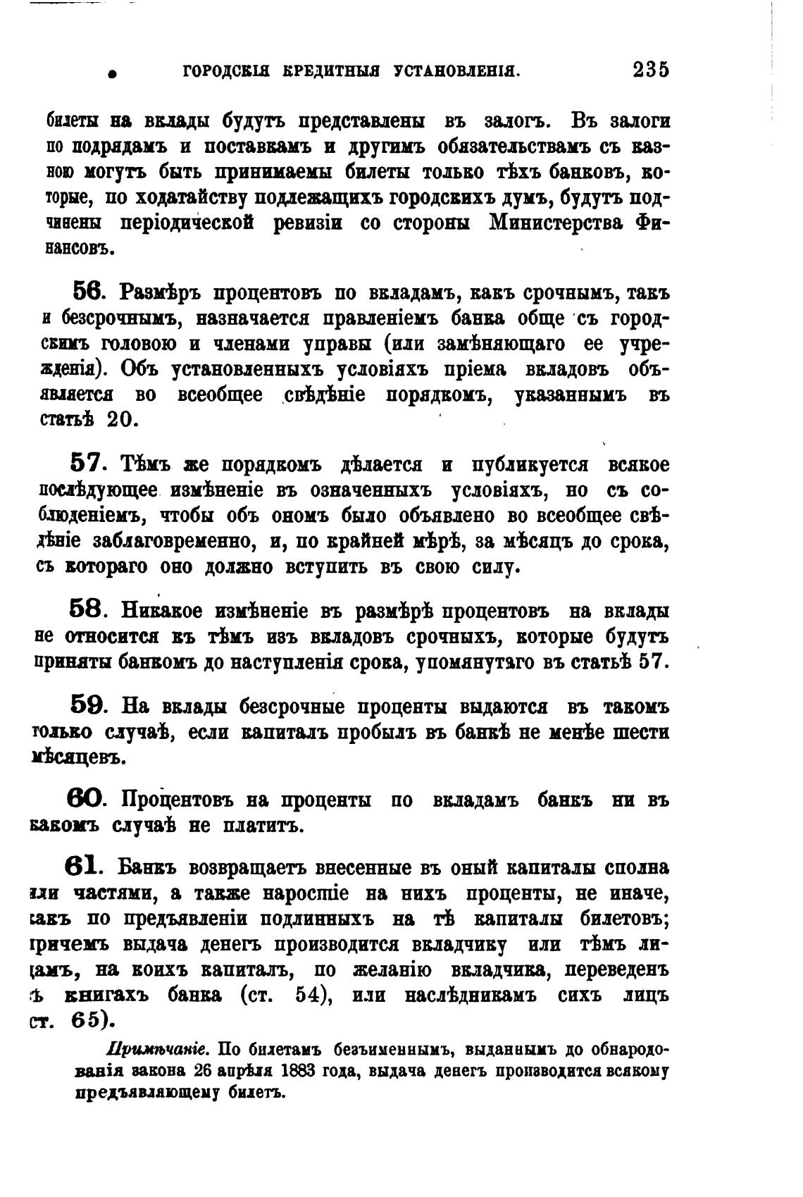61. Банвъ возвращаеть внесенные въ оный капиталы сполна