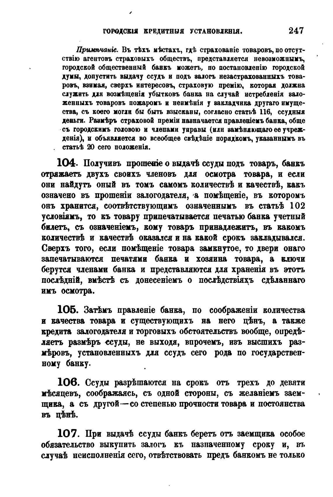 104. Подучивъ nporue«ie о выдачв ссуды подъ товаръ, баввъ