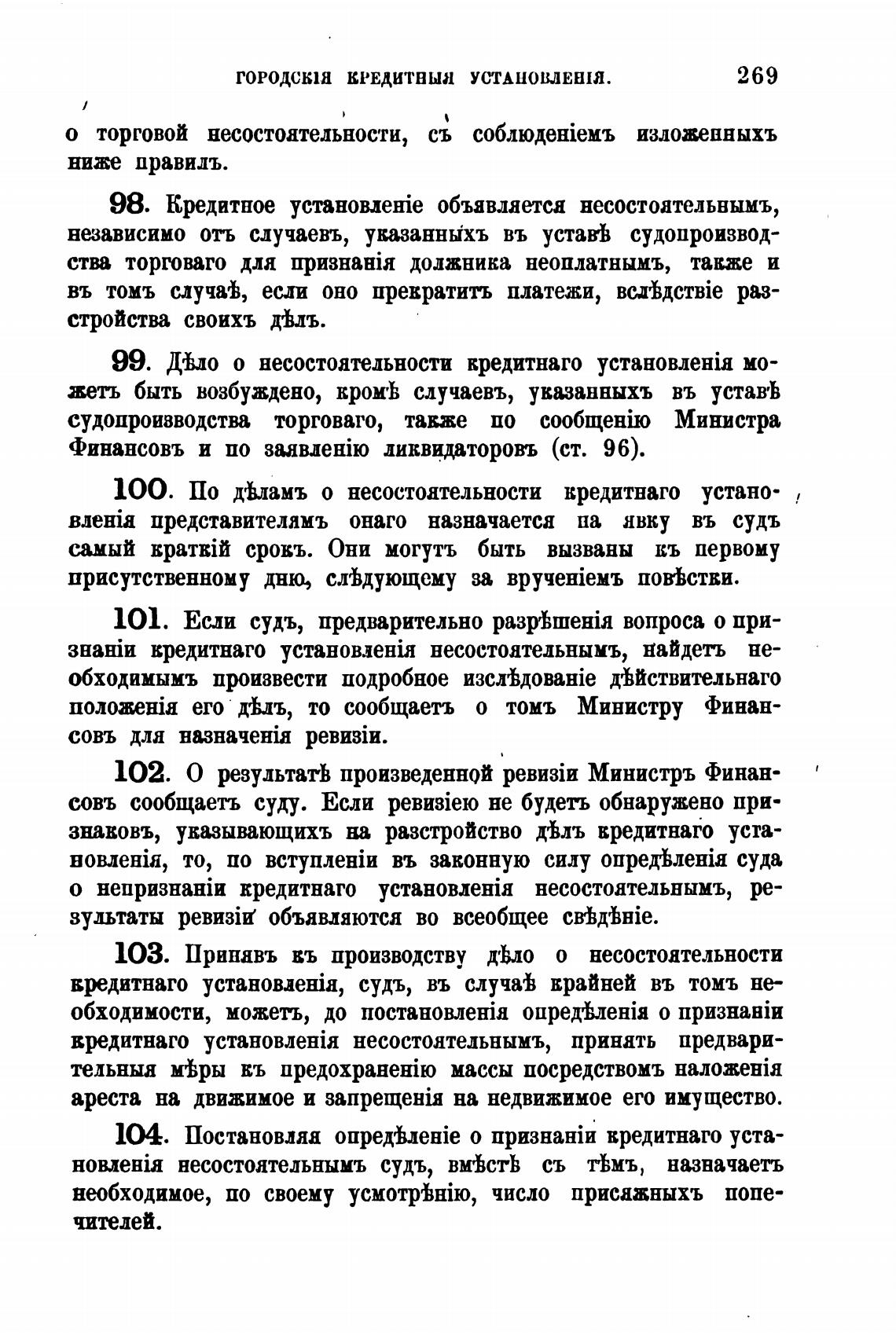 98. Кредитное ycTH0BxeHie объявлаетса несостоательвымъ,