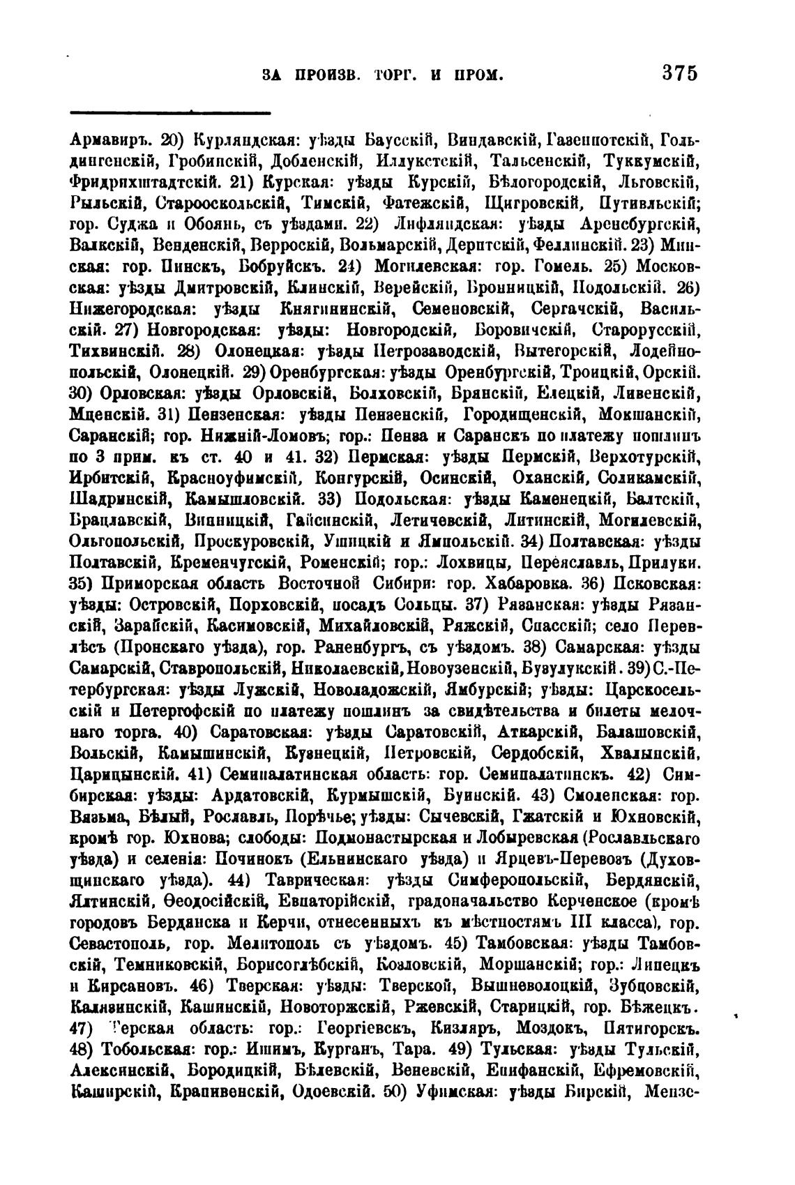 48) Тобольсваа: гор.: Ишнмъ, Курганъ, Тара. 49) Тульсваа: у•ћнды