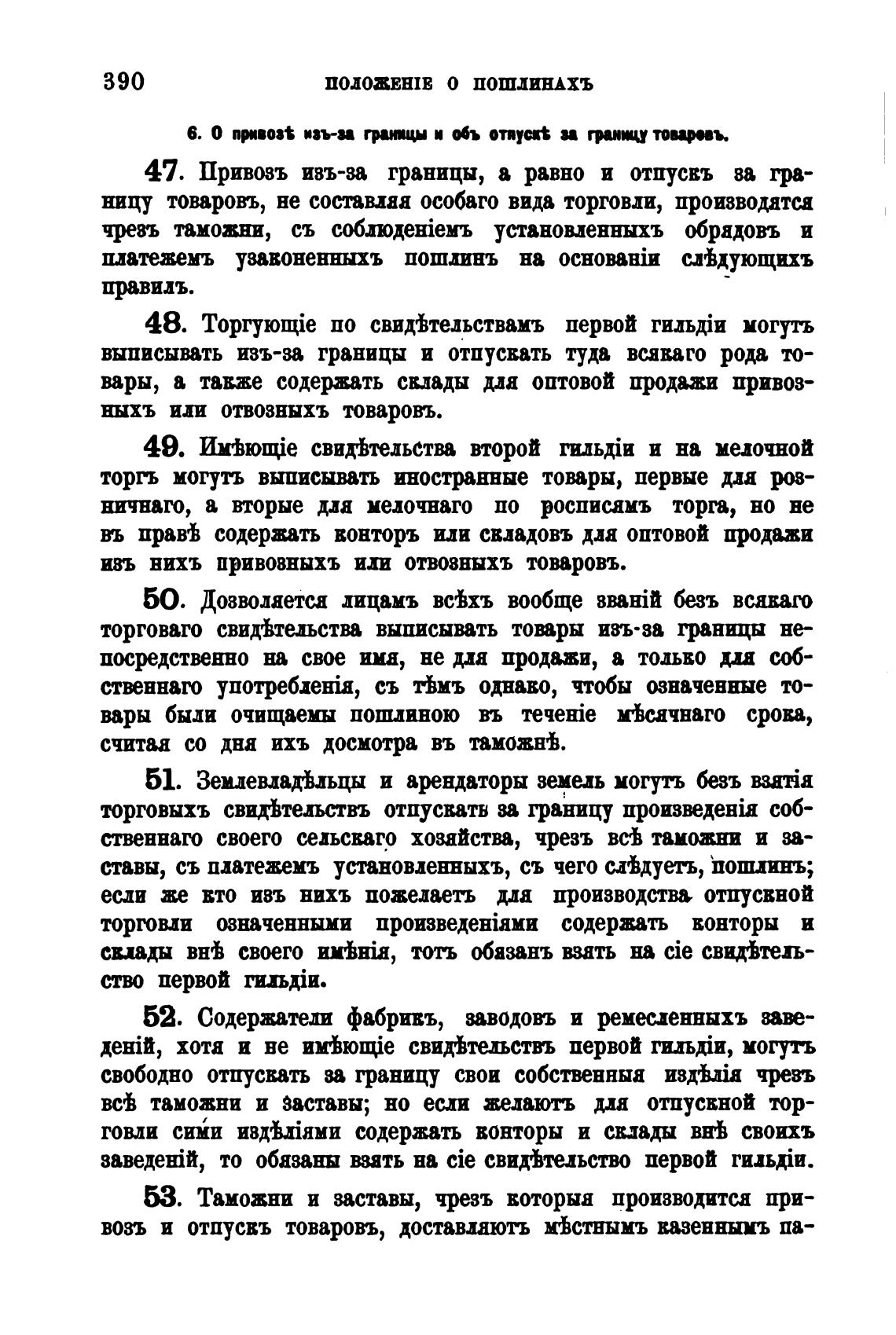 47. Привозъ изъ-за границы, а равно и отпусвъ ва гра-