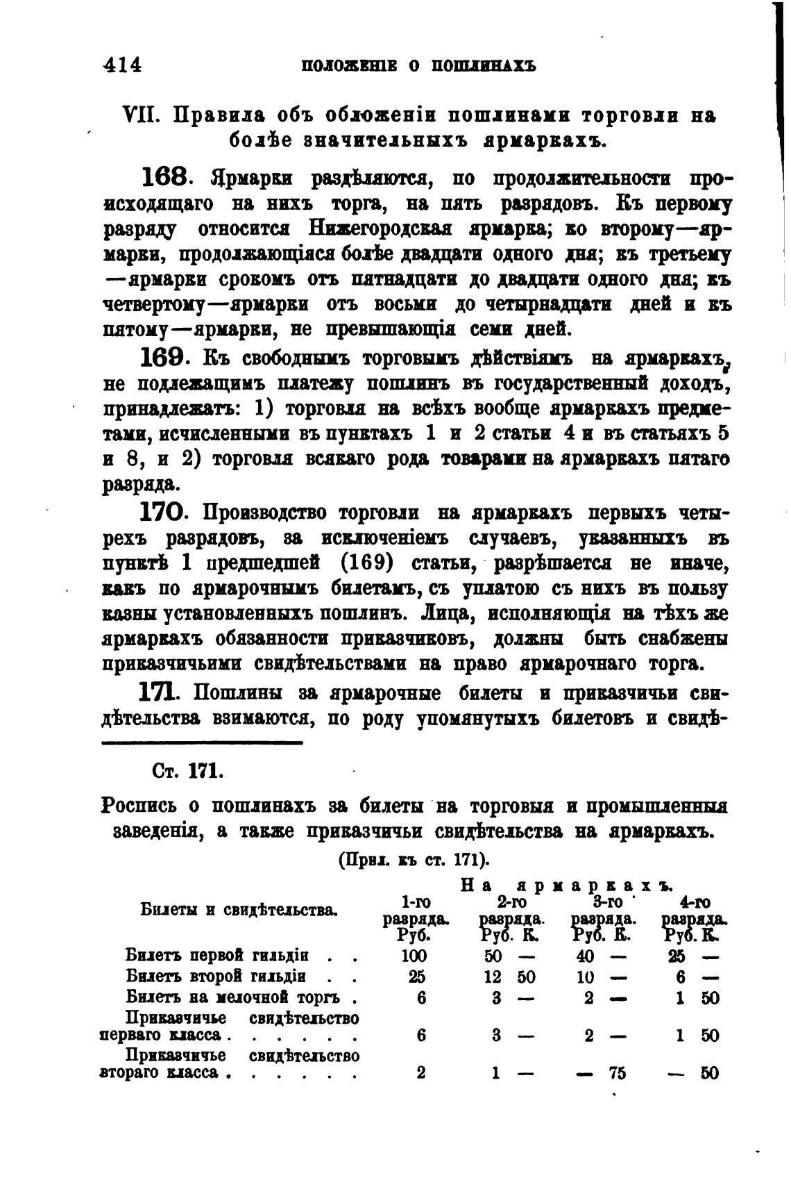 171. Пошлины за ярмарочные билеты и привычичьи сви-