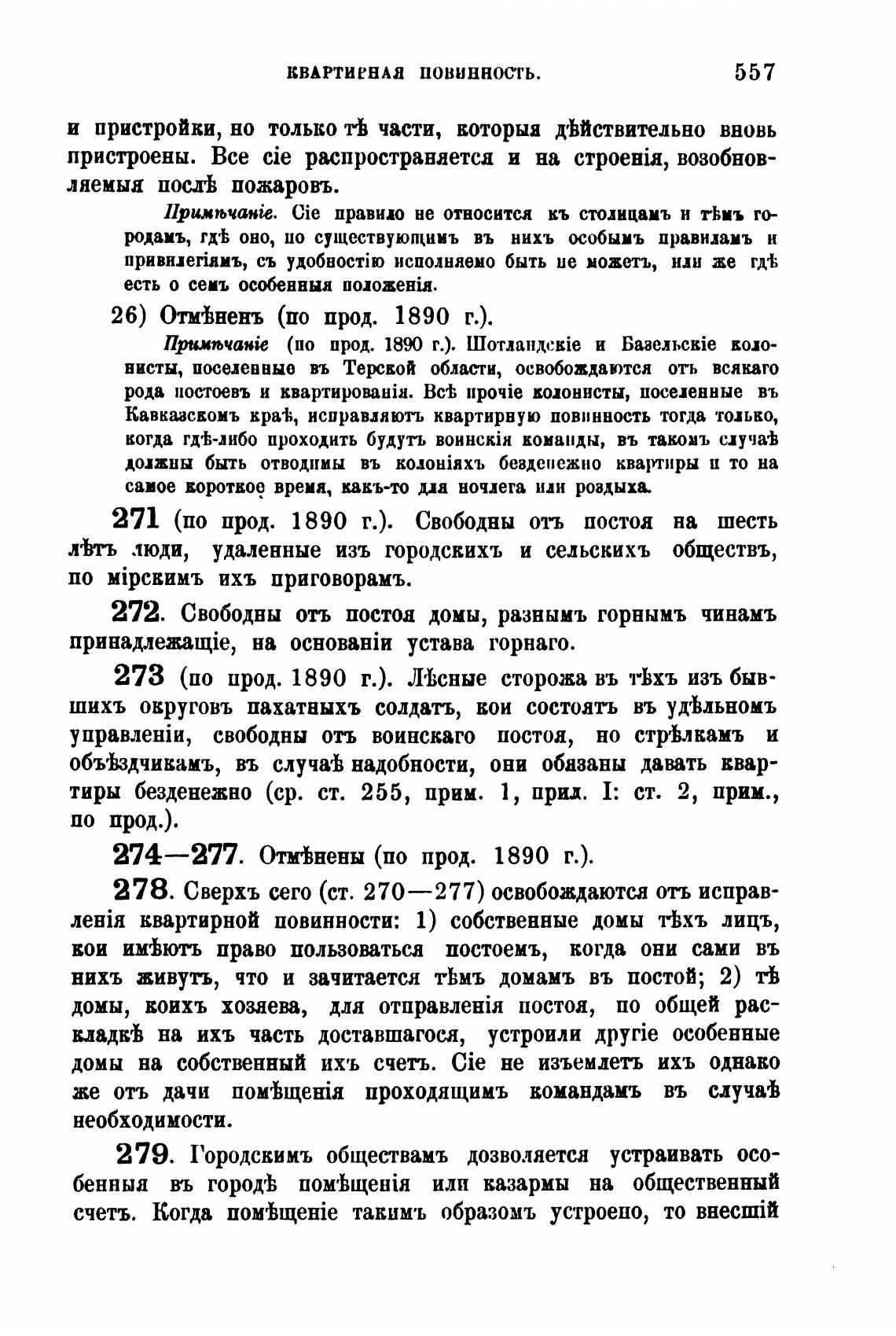 271 (по прод. 1890 г.). Свободны отъ постоя на шесть