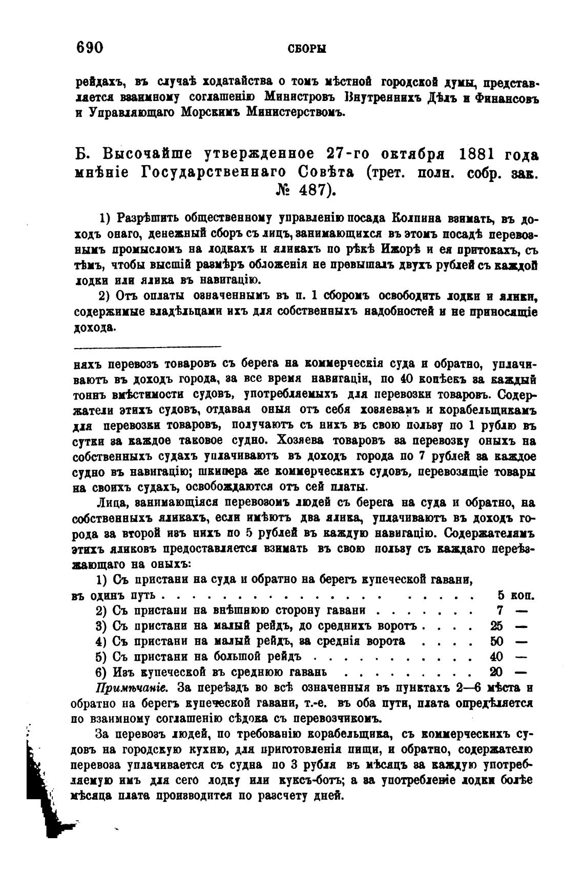 Б. Высочайше утвержденное 27-го овтабра 1881 года