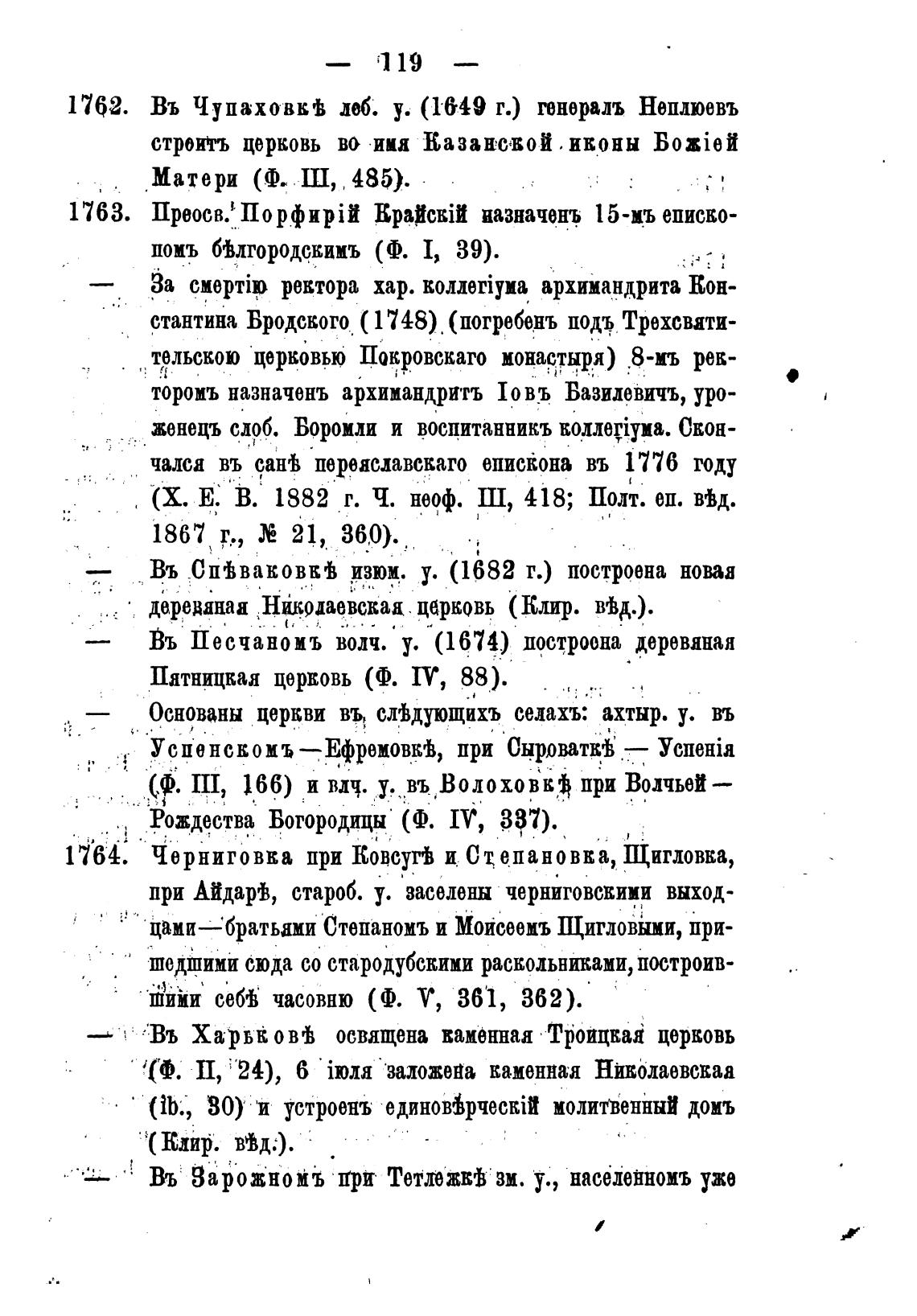 Основаны церкви въ слыующихъ селахъ: ахтыр. у. въ