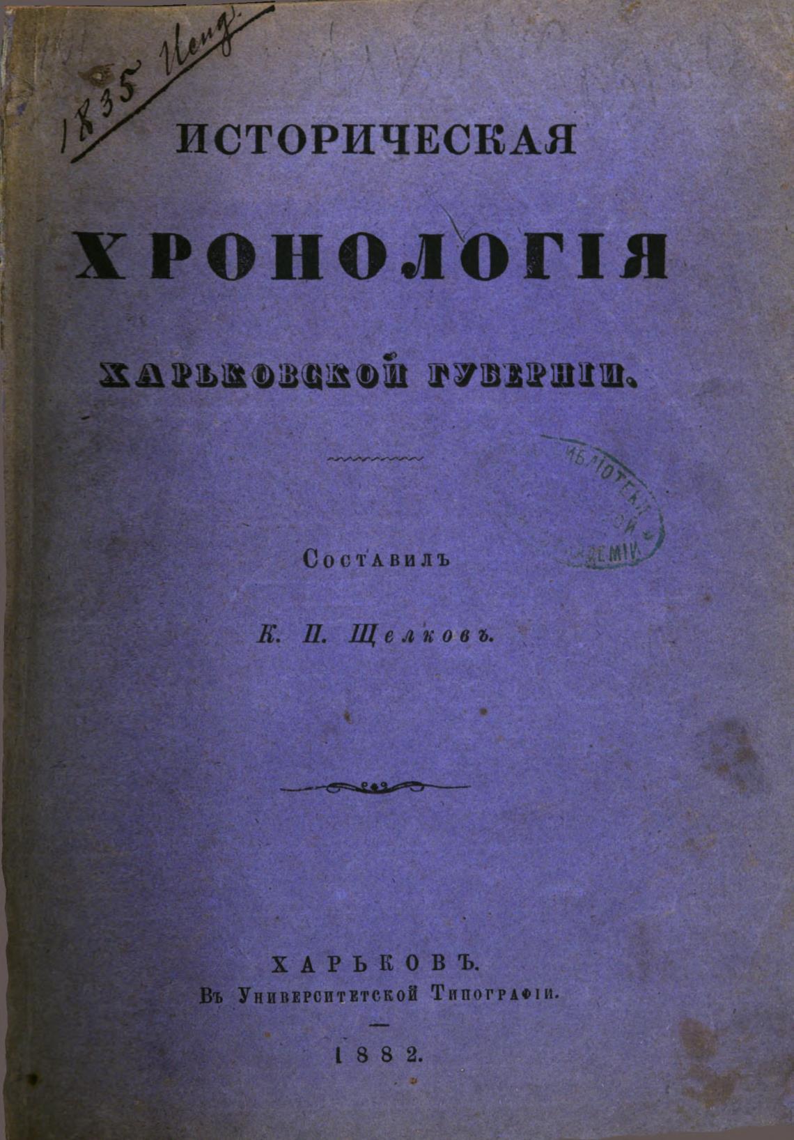 Историческая хронология Харьковской губернии. - Щелков К. П.