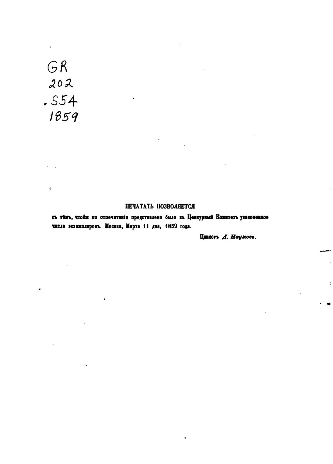 чип типировъ. Моепа, Марта 11 дня, 1859 года.