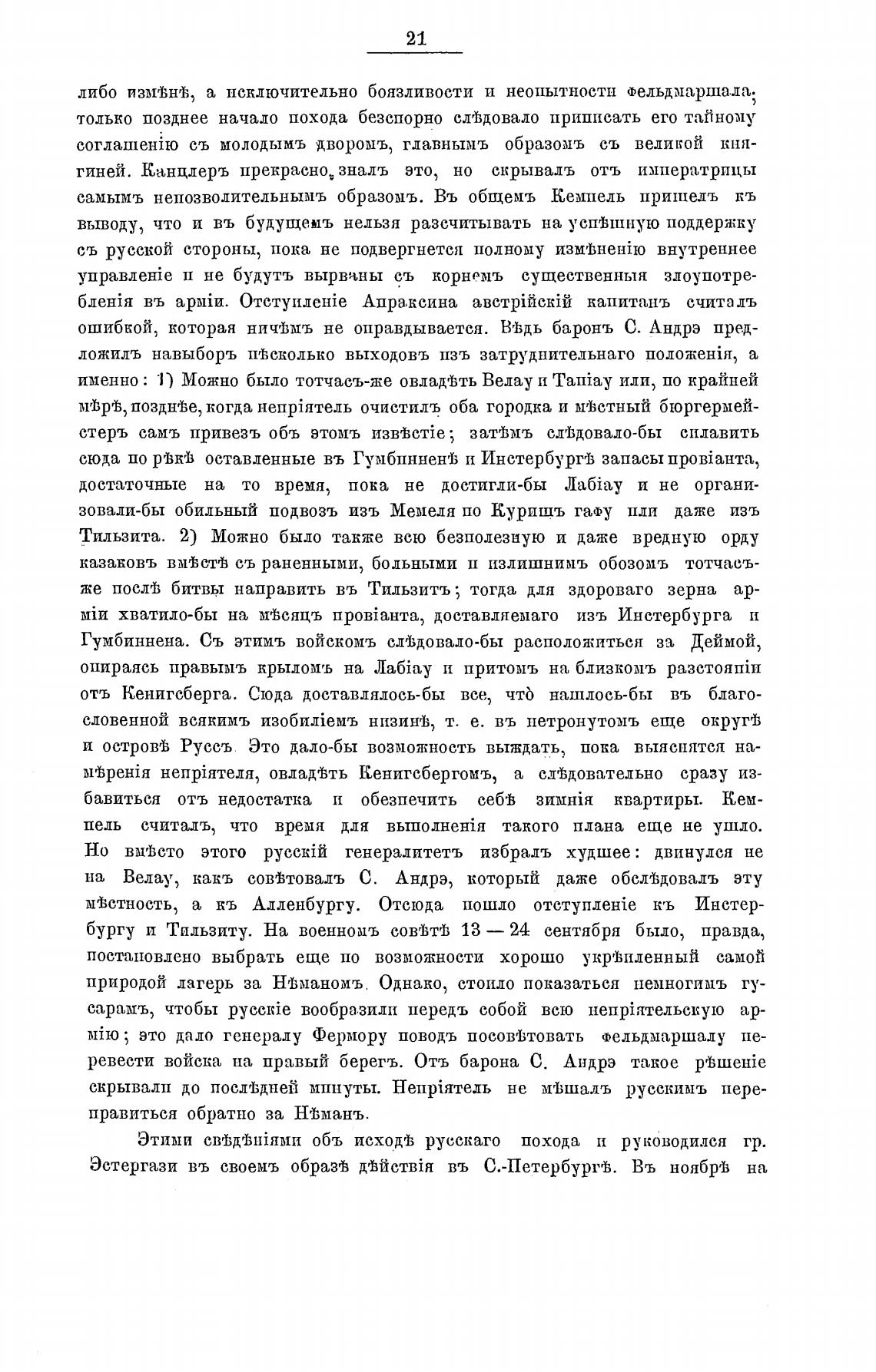 Этими СВ'ђД'1З1йЯМИ объ исход'ђ русскаго похода и ру ководился гр.