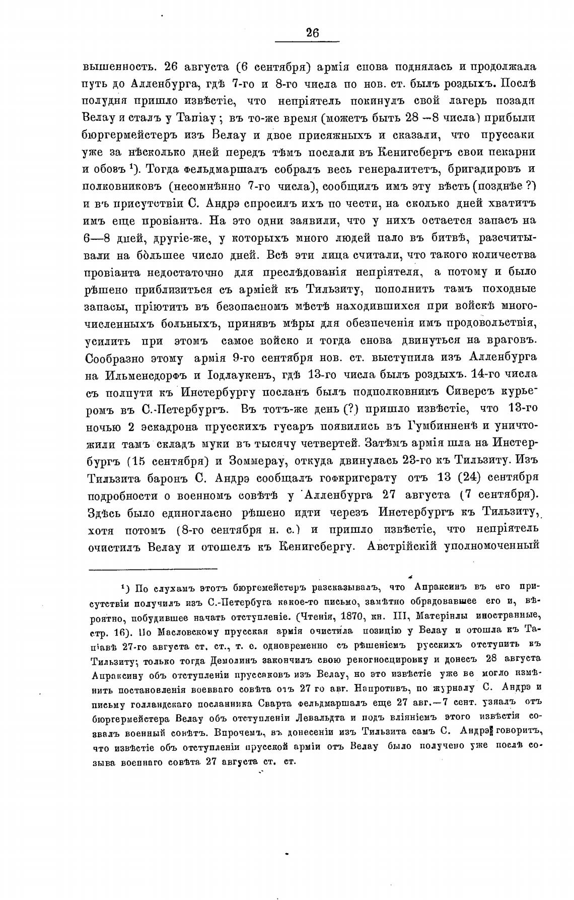 Тильзита баронъ С. Андрэ сообщалъ гофкригсрату отъ 13 (24) сентября