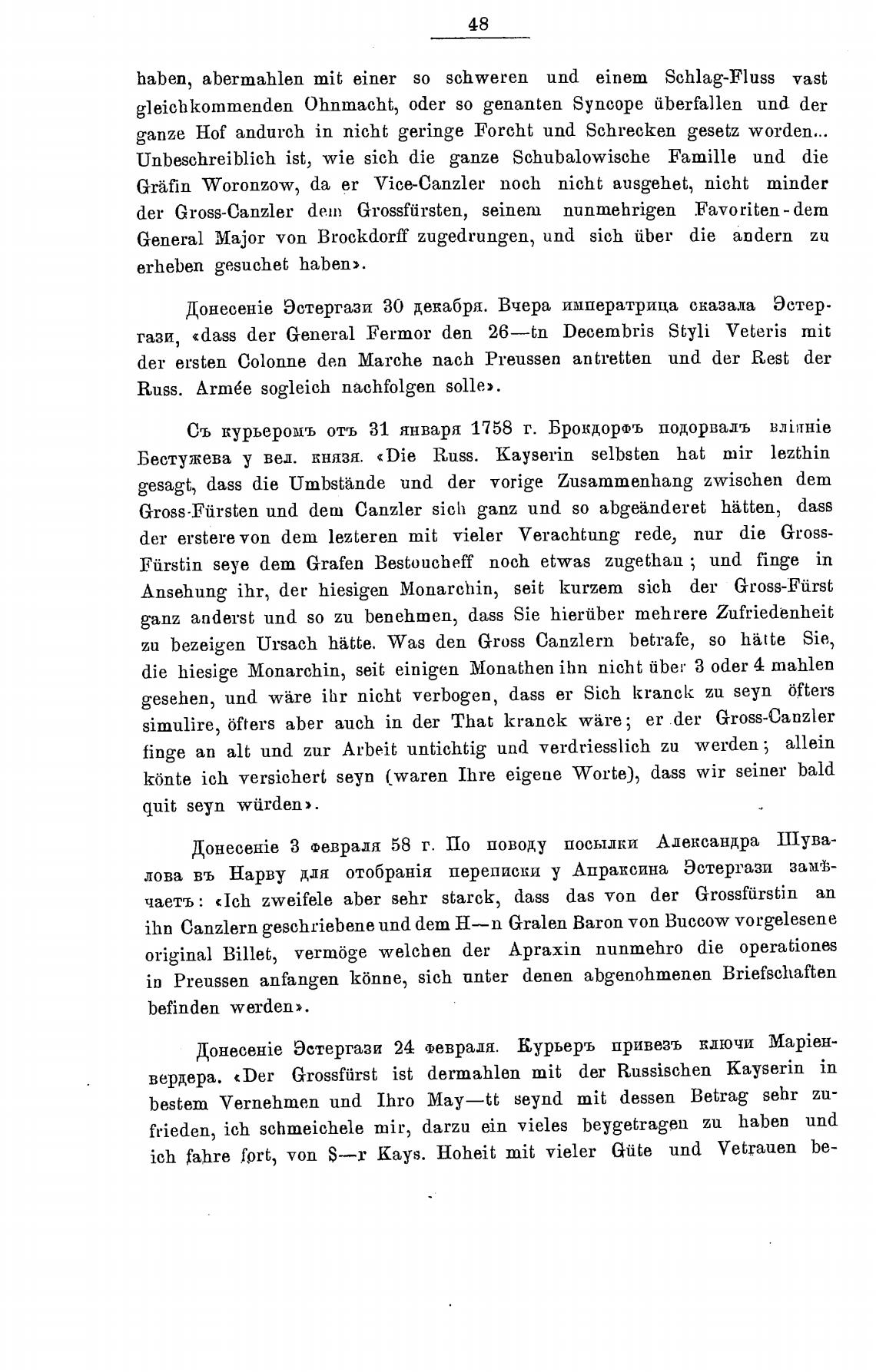 Съ курьеромъ отъ 31 января 1758 г. Брокдорть подорвадъ B.71i\THie