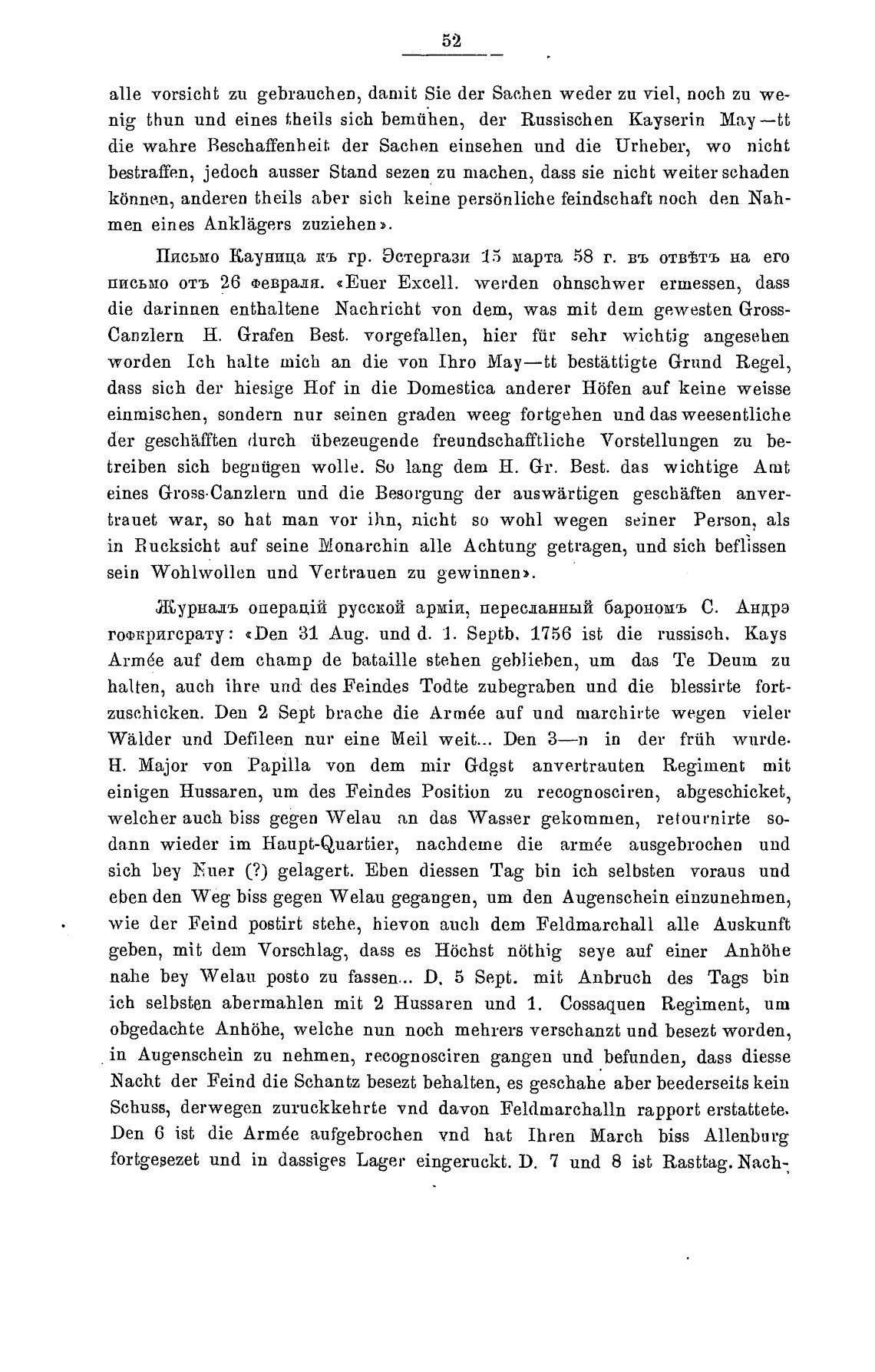 готкригсрату: «Den 31 Аид. und d. 1. Septb. 1756 ist die russisch. kays