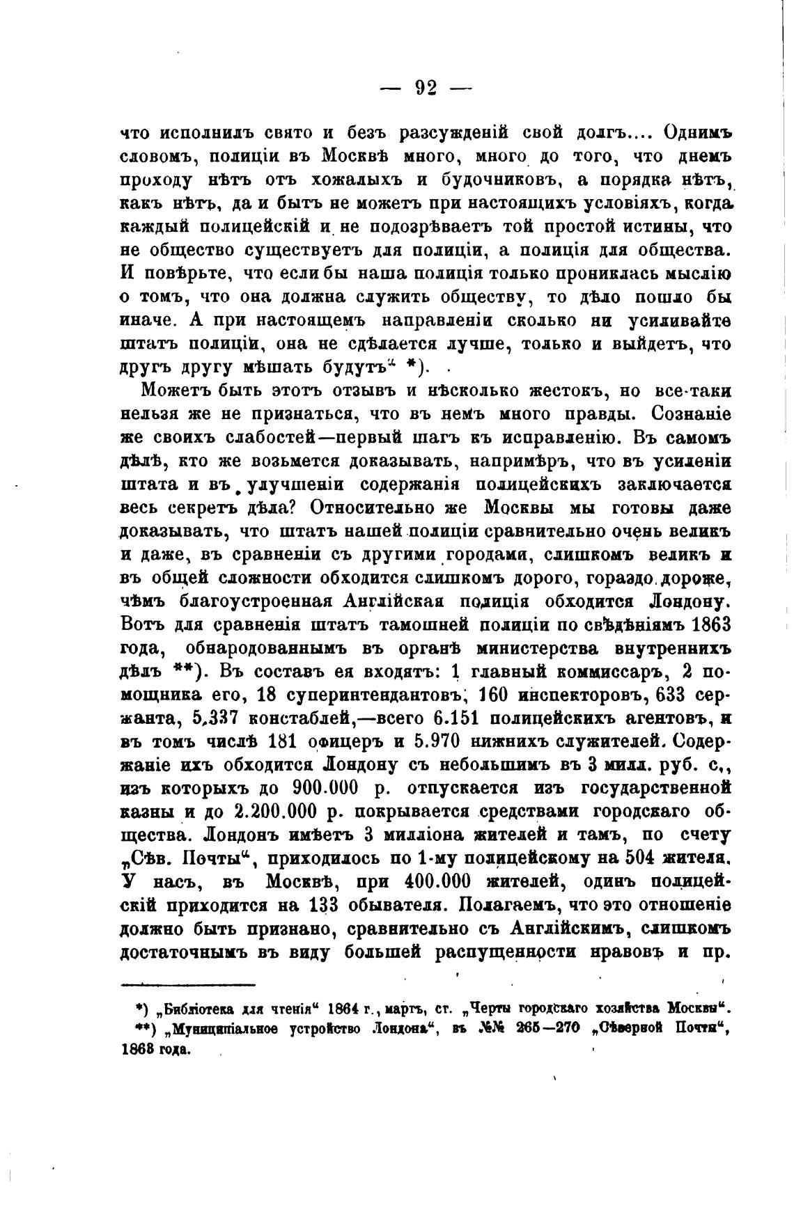 У насъ, въ Мосвврв, при 400.000 жителей, одинъ подицей•