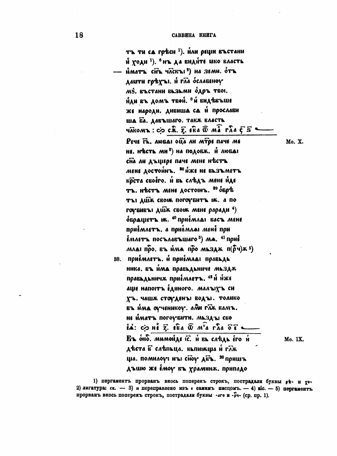 1) пергаментъ прорванъ вкось поперекъ стркъ, пострцади буквы и Х••