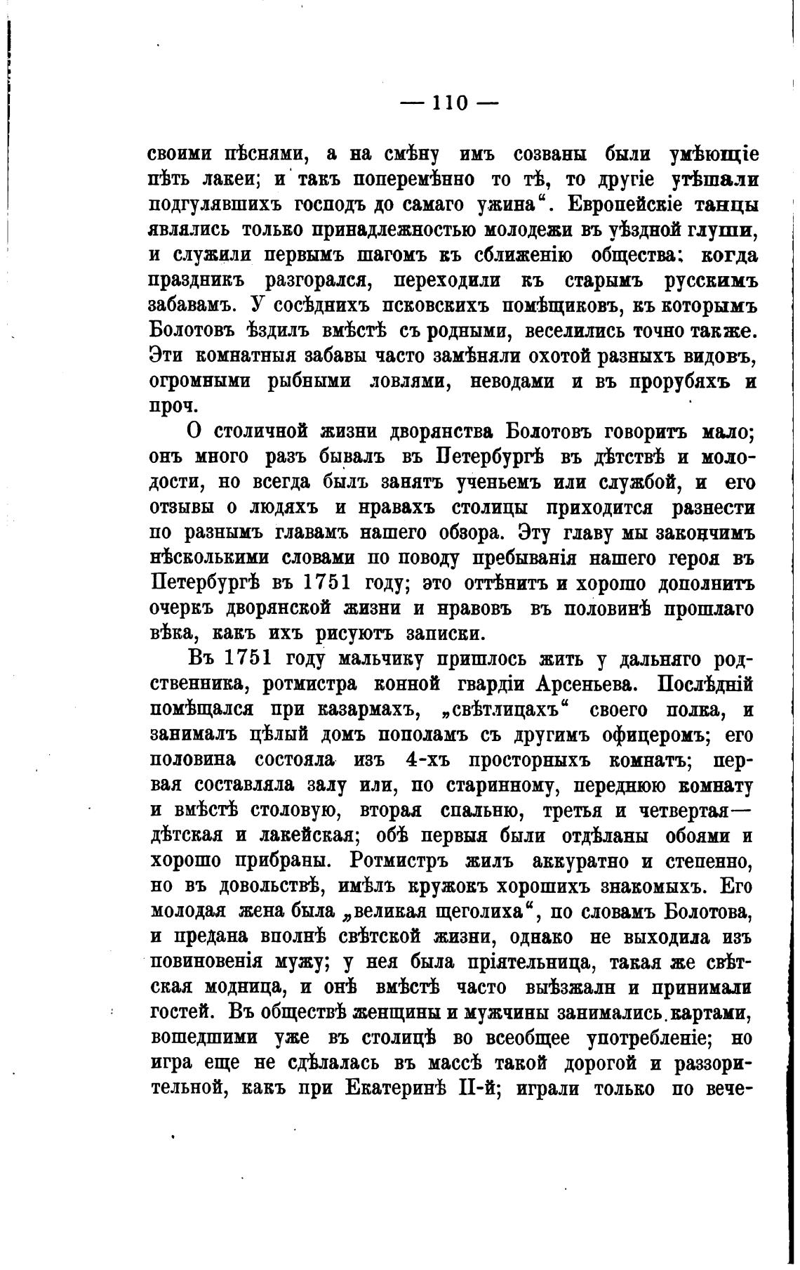 О столичной жизни дворянства Болотовъ говорить мало;
