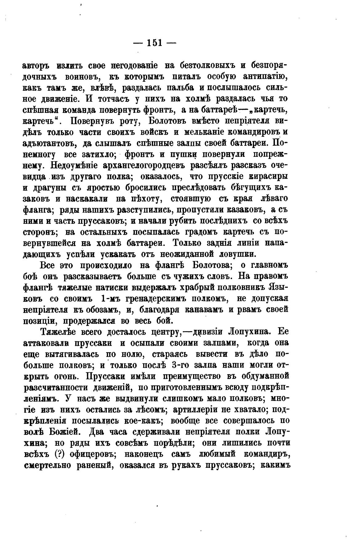 флангЬ тяжелые натиски выдержалъ храбрый полковнивъ Язы-